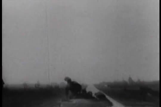 An old fashioned car pulls a skier behind in a sport that never caught on in this 1918 stunt film.