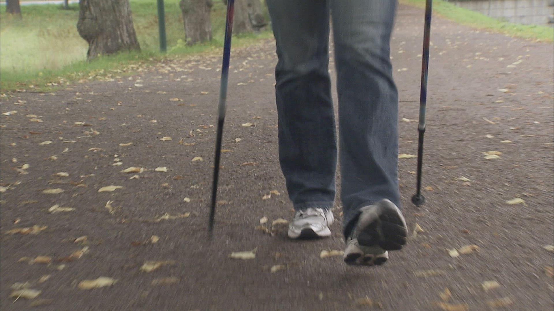 A man pole walking in a park; Sweden.