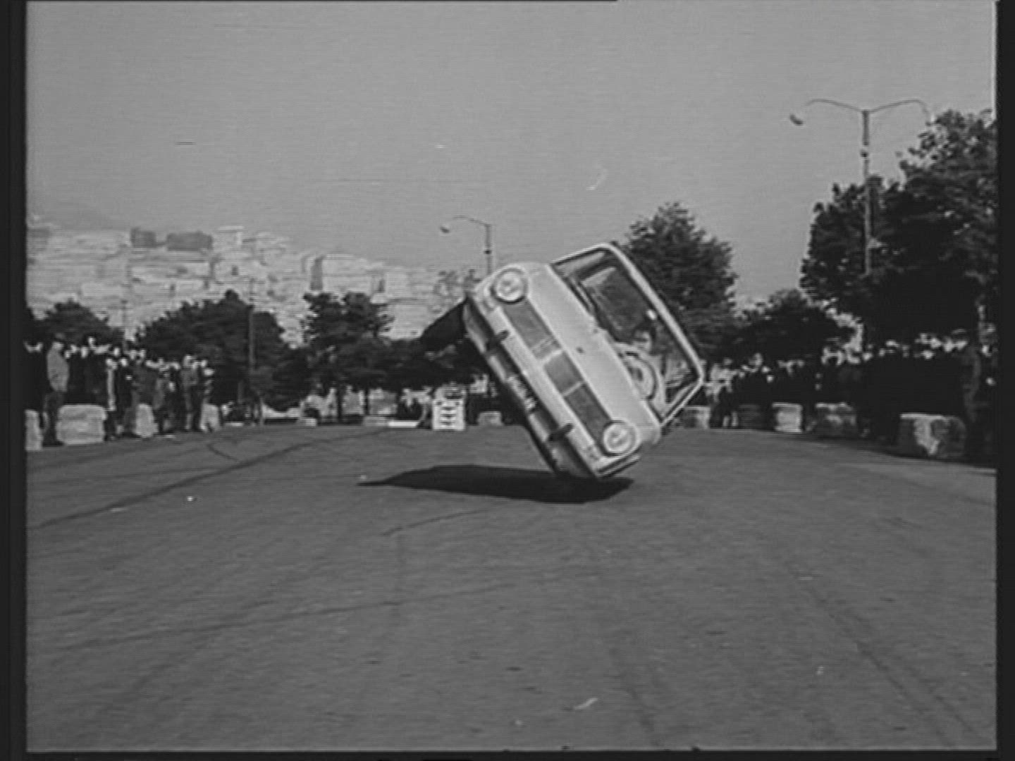 Stunt driving of the latest 1950s Chevrolets in the Joie Chitwood Thrill Show.