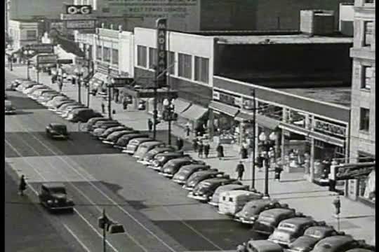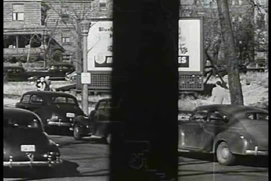 A man narrates to the camera about outdoor advertising, billboards in 1942.