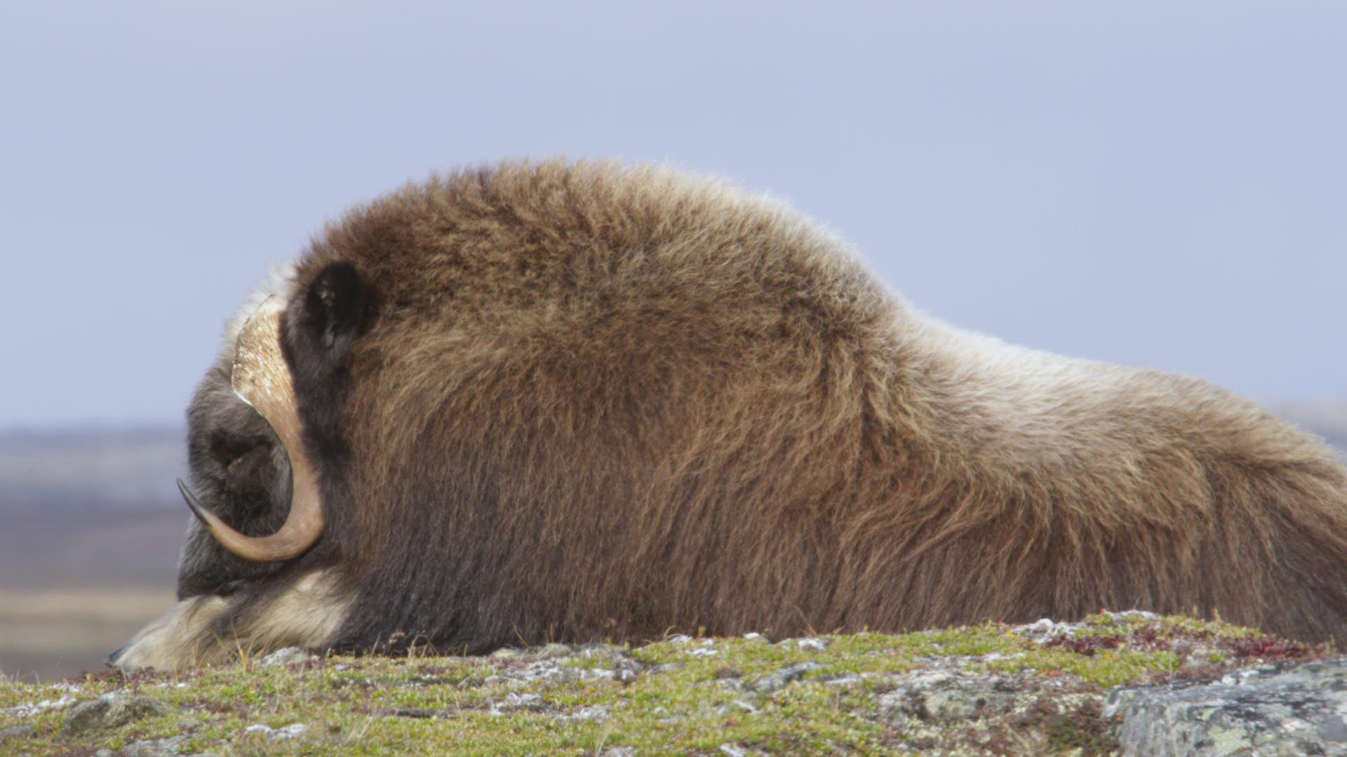 Muskox sleeping atop hill