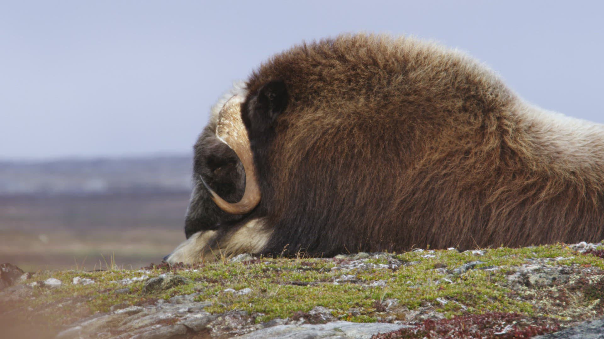 Muskox sleeping atop hill