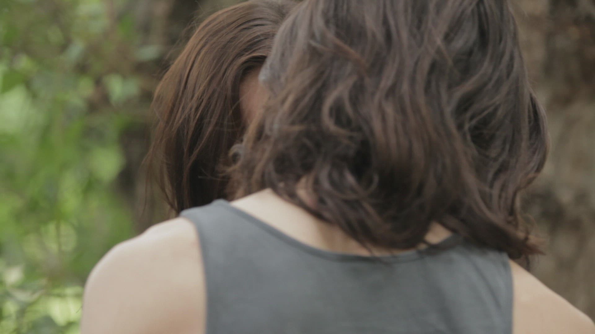 EXT DAY WOOD- YOUNG COOL GUY WITH GIRL ROMANTIC,LOVE, LUST STARTS PULL UP CLOTHES