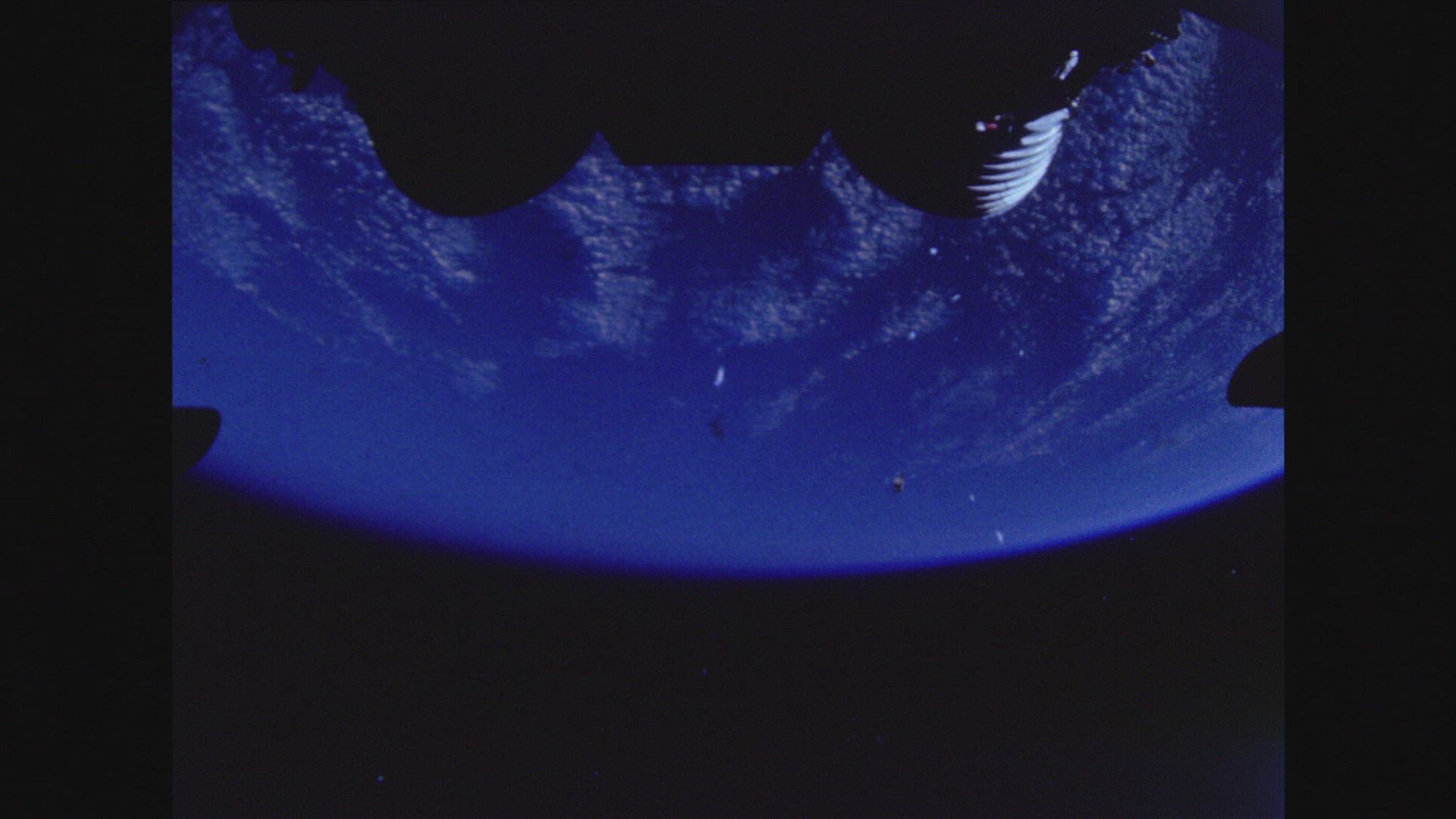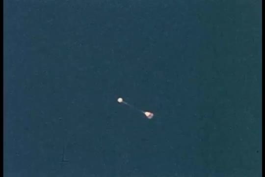 > Space capsule drops to earth after a successful mission.