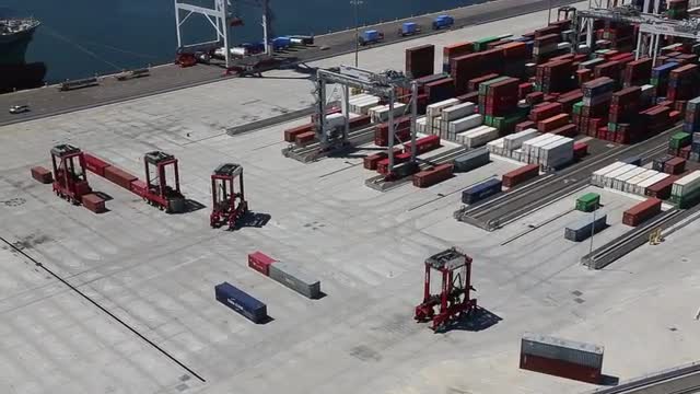 > Goods are inspected at San Piedro harbor in Los Angeles circa 1960.