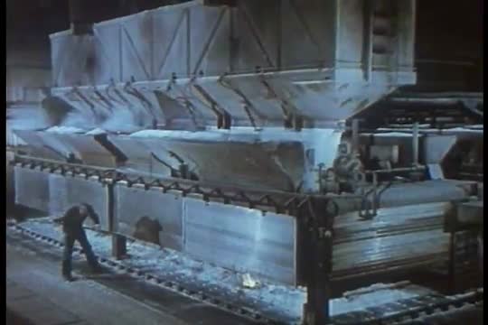 > The workings of an aluminum factory in the 1950s.