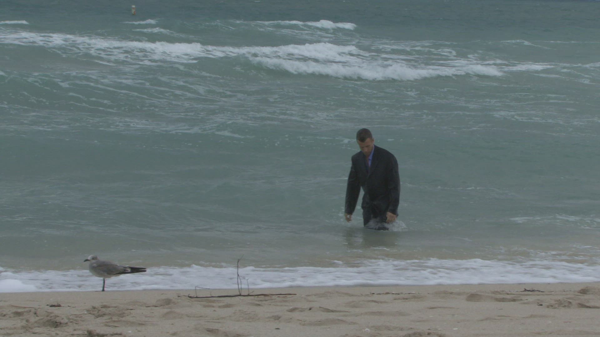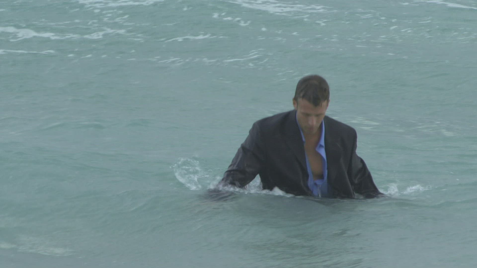 Male walking into the ocean