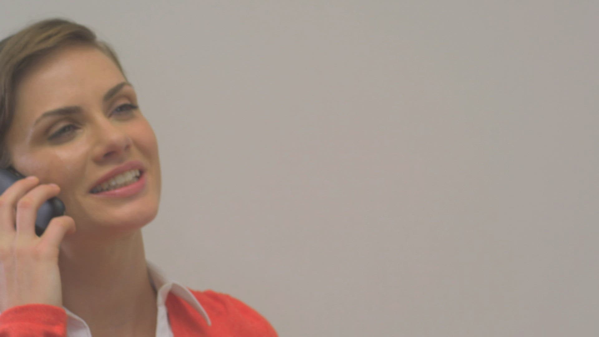 MCU OF A BUSINESSWOMAN USING A CELL PHONE
