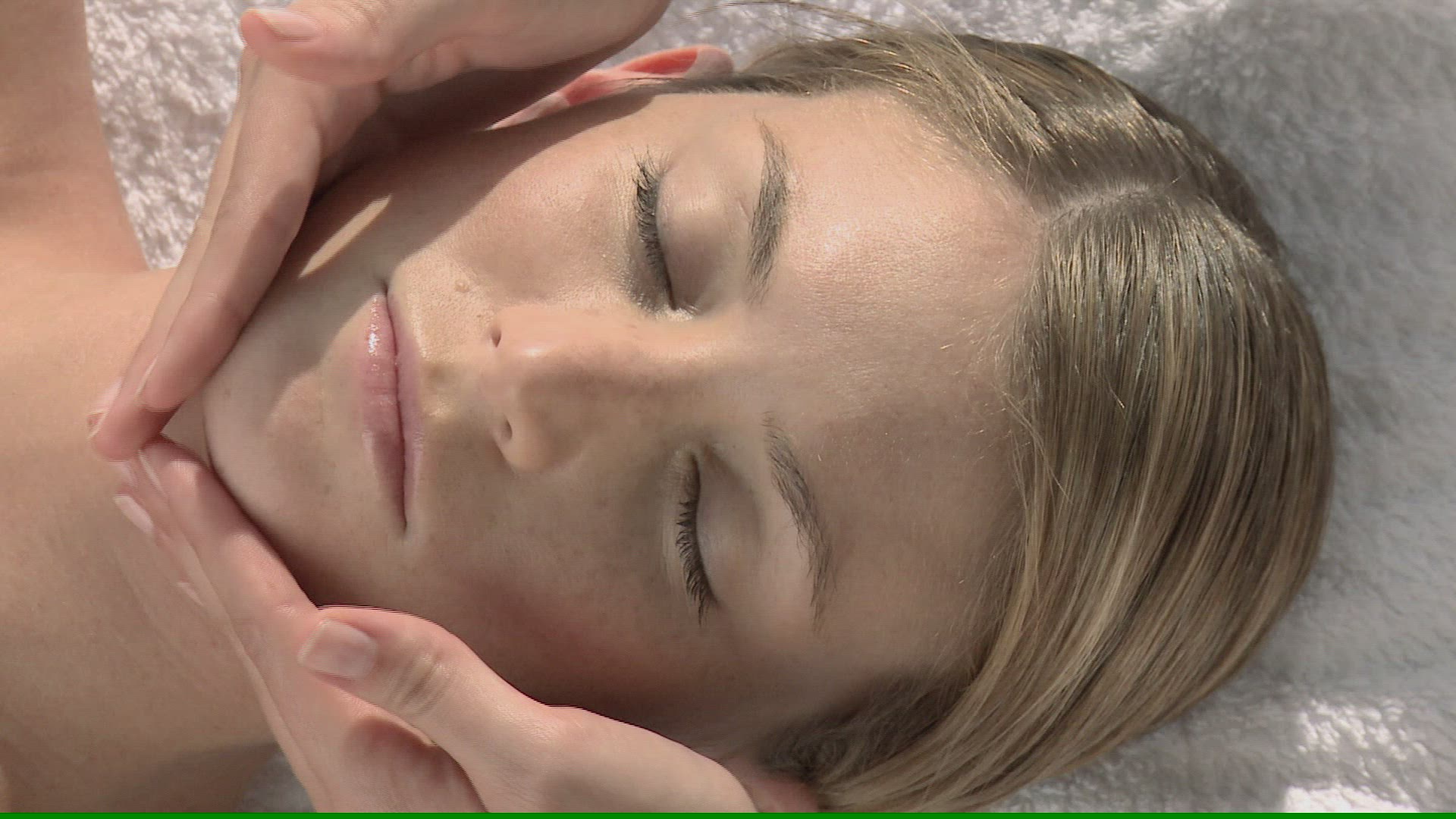 MS OF A YOUNG WOMAN LYING ON A MASSAGE TABLE