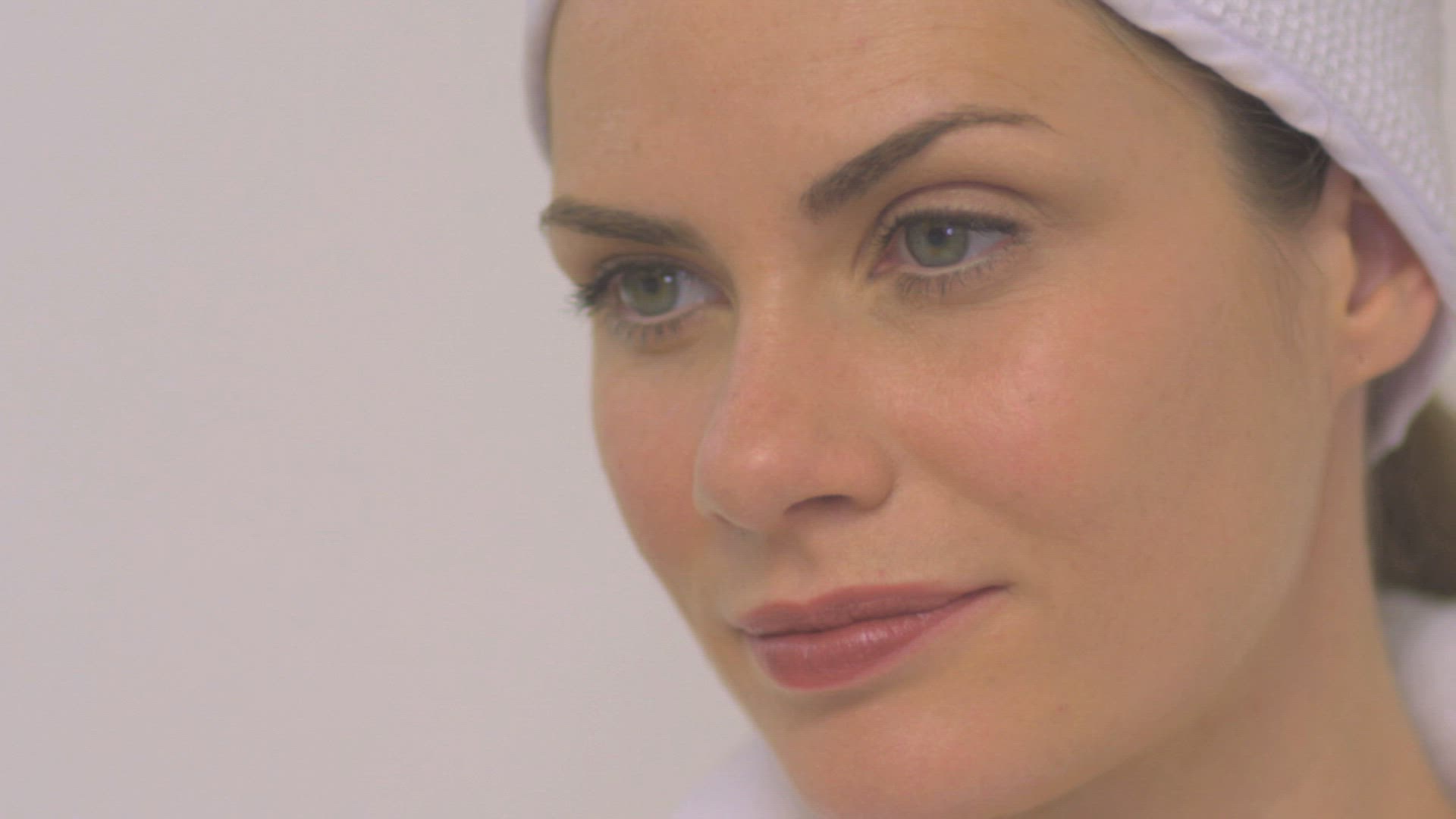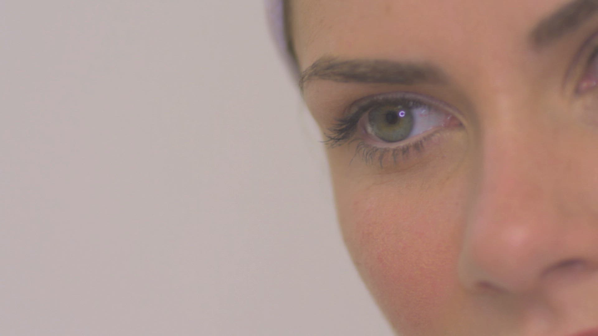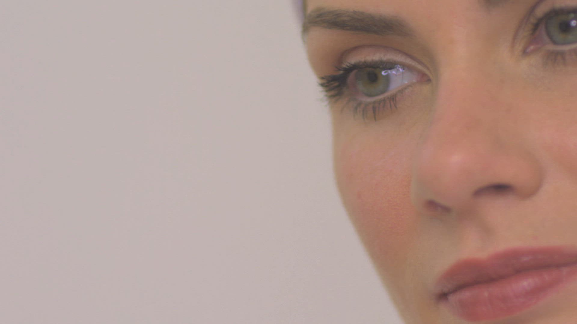BCU PAN OF A WOMAN APPLYING BLUSHER