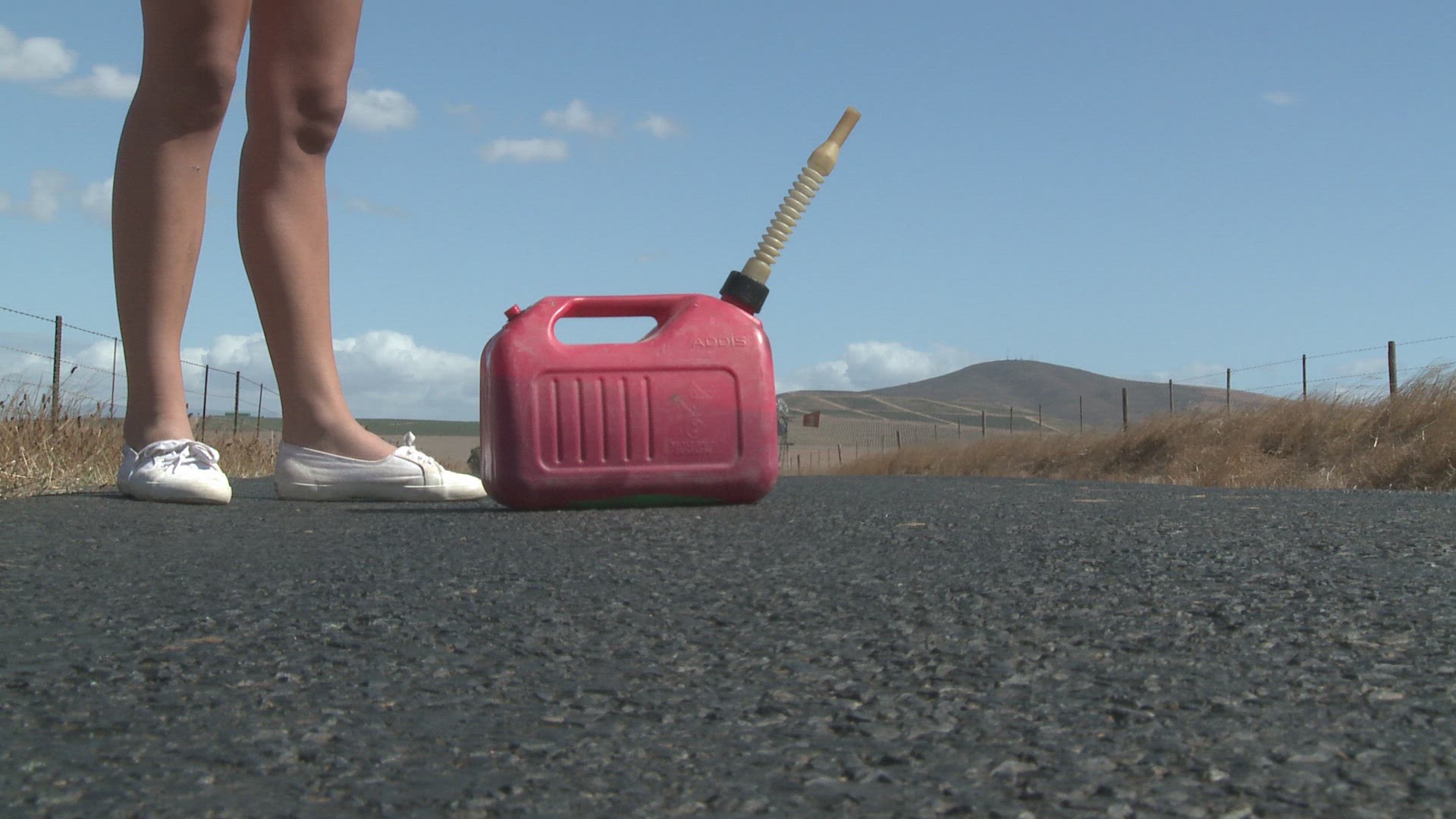 MS OF A YOUNG WOMAN HITCHHIKING