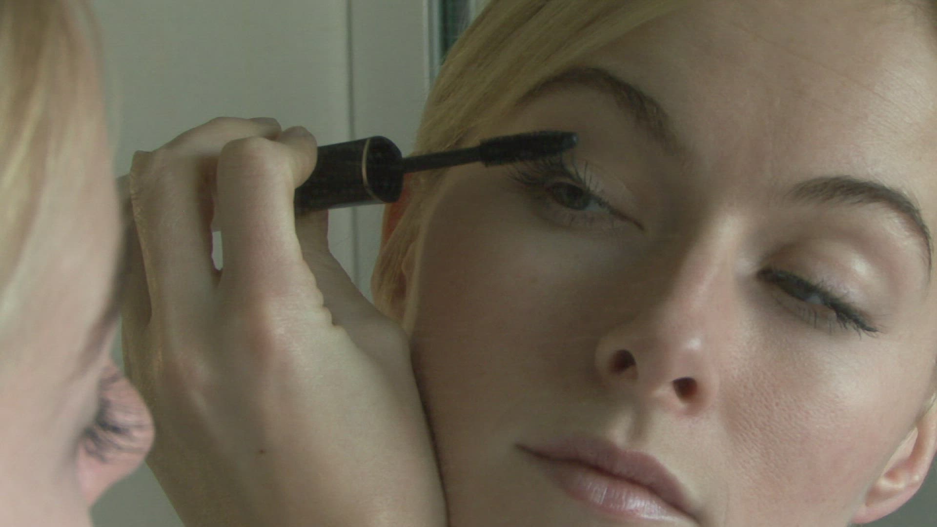 WS ZO OF YOUNG WOMAN APPLYING MASCARA