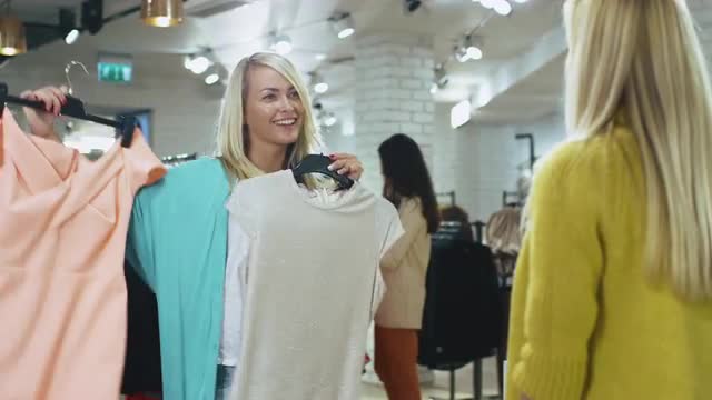 A girl tries on dresses for a big date with her boyfriend in the 1950s.