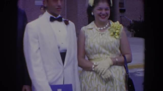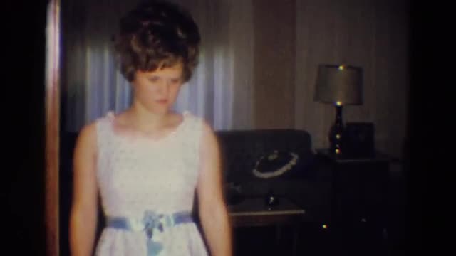 A girl tries on dresses for a big date with her boyfriend in the 1950's.