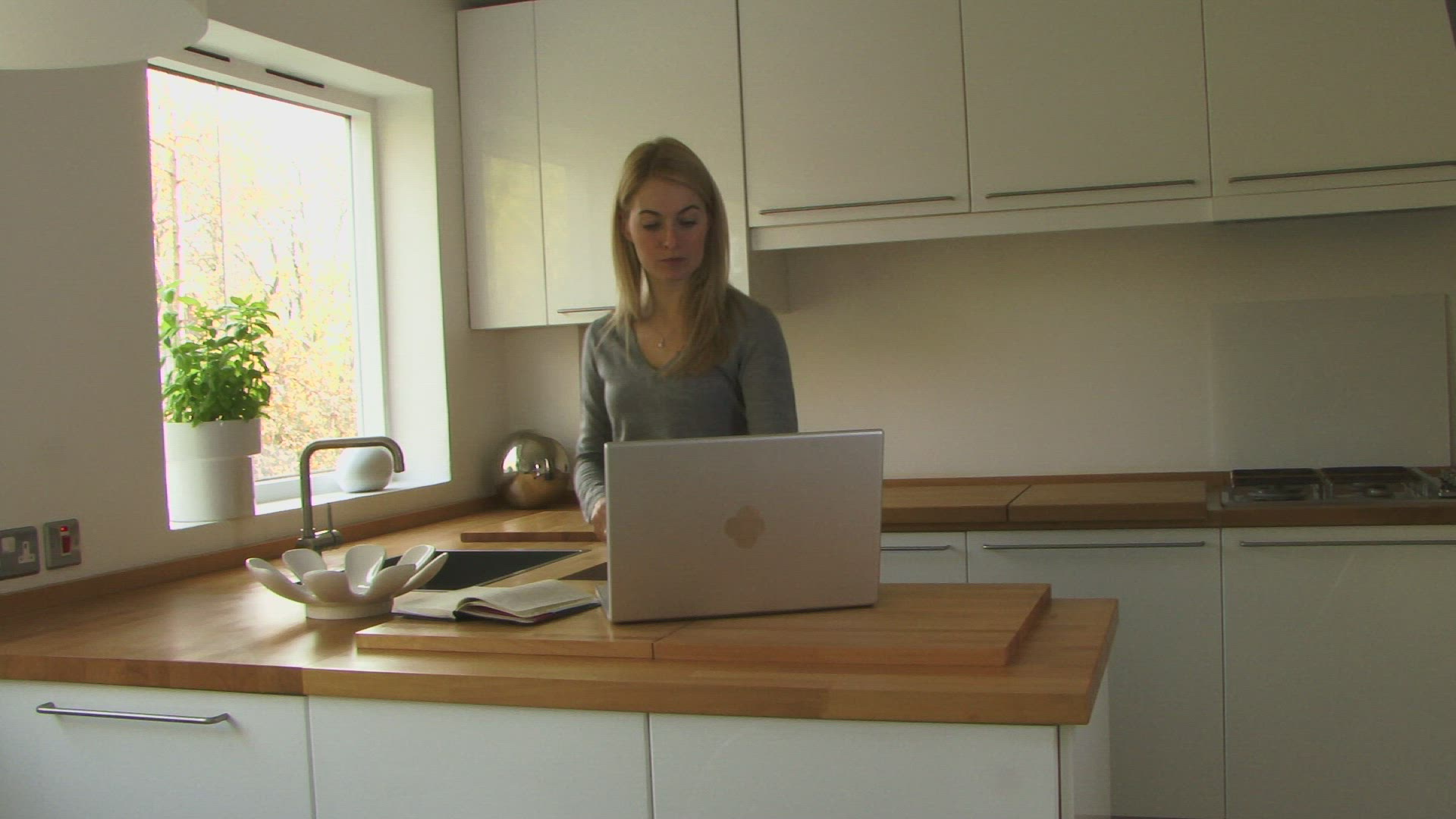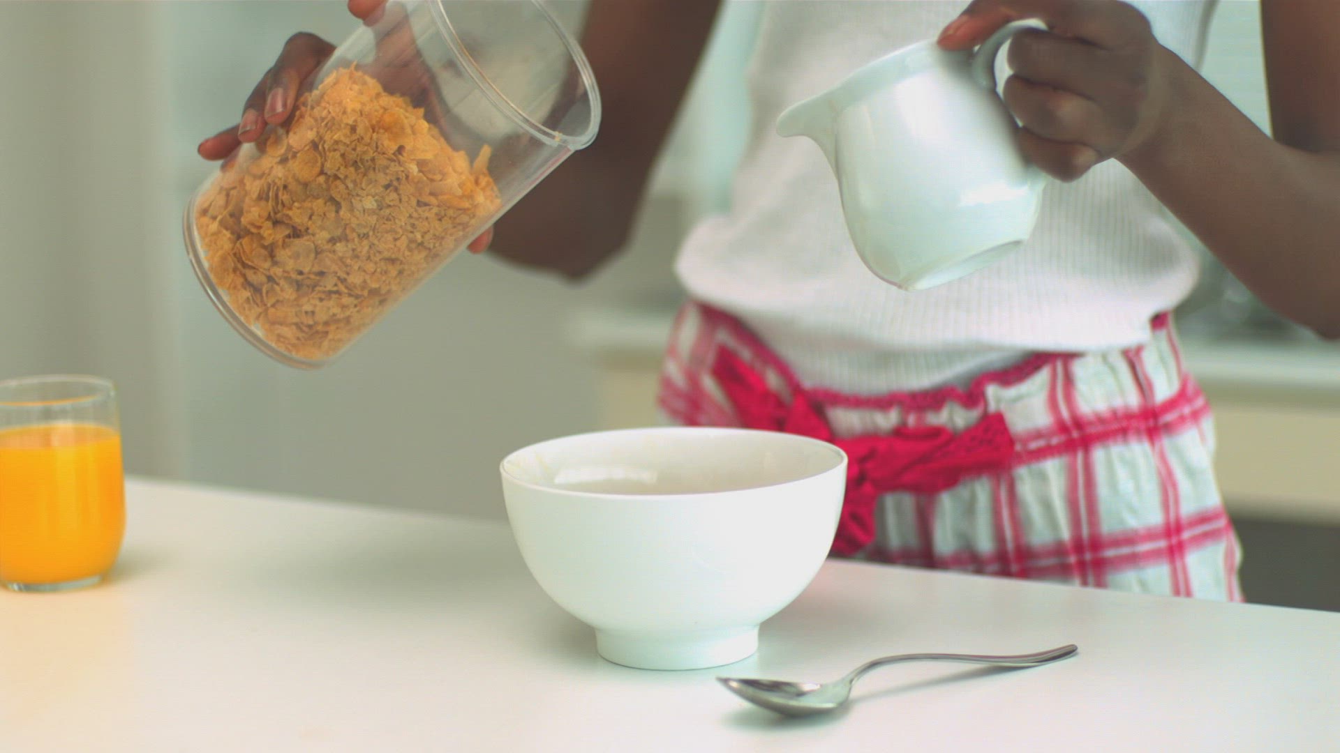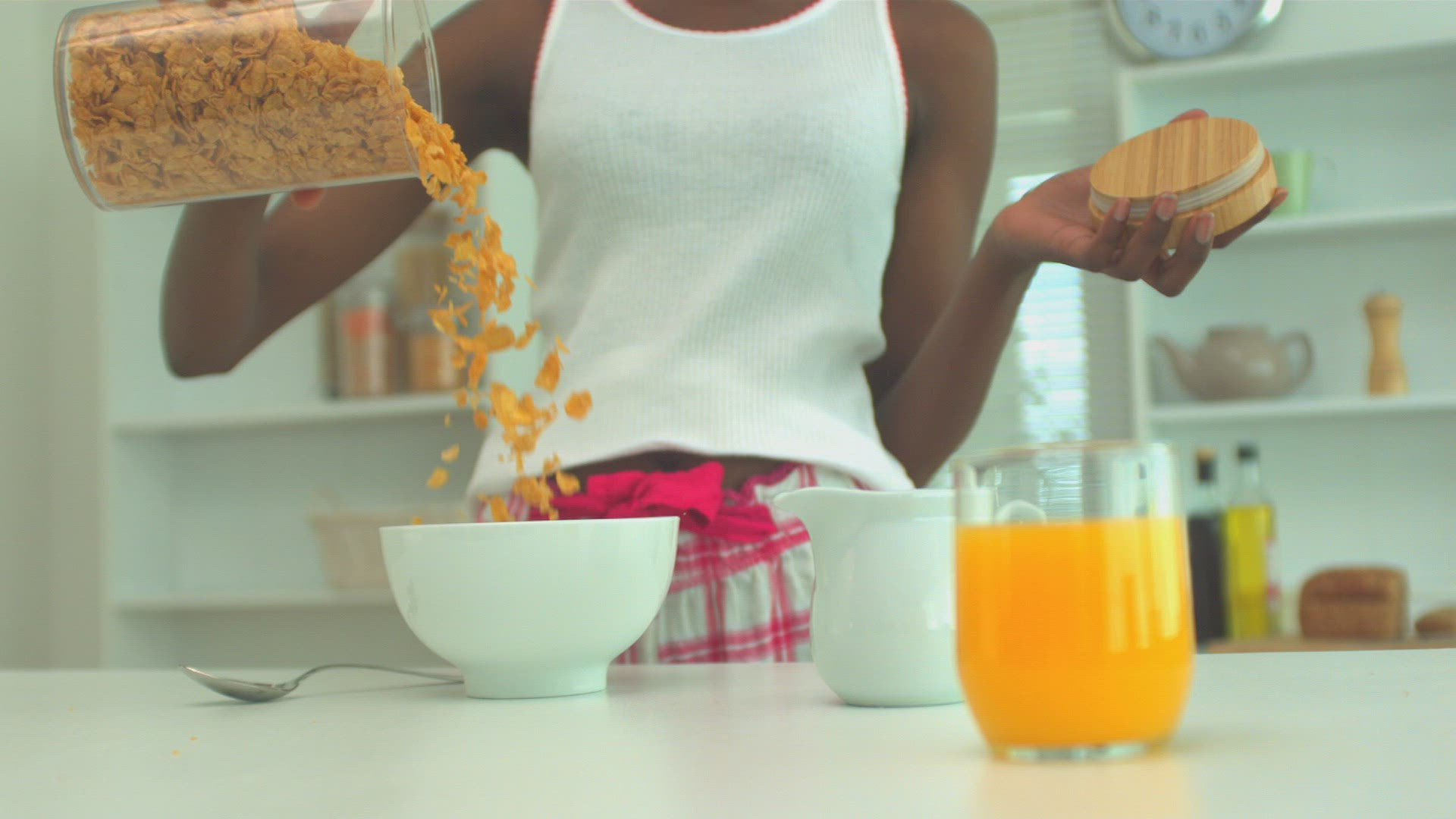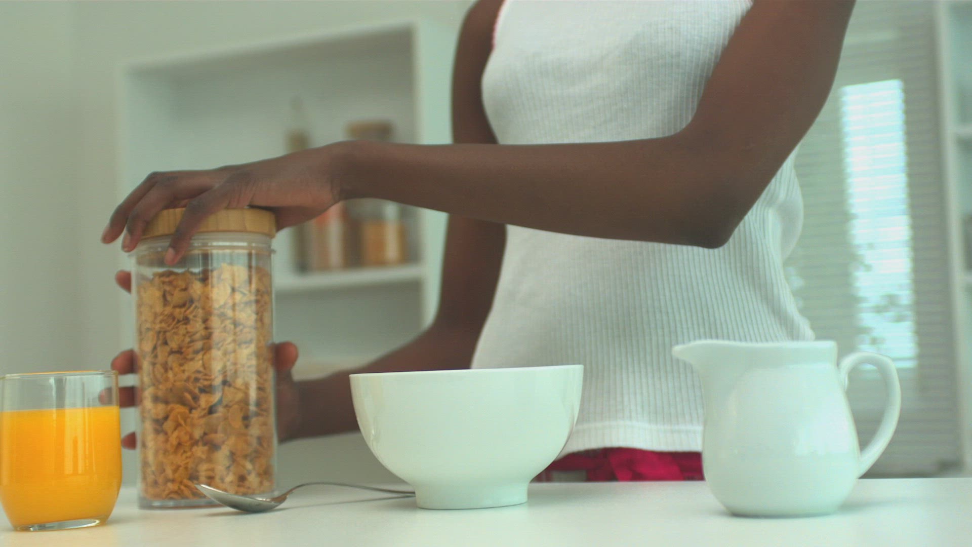 MS OF A YOUNG WOMAN MAKING A DRINK