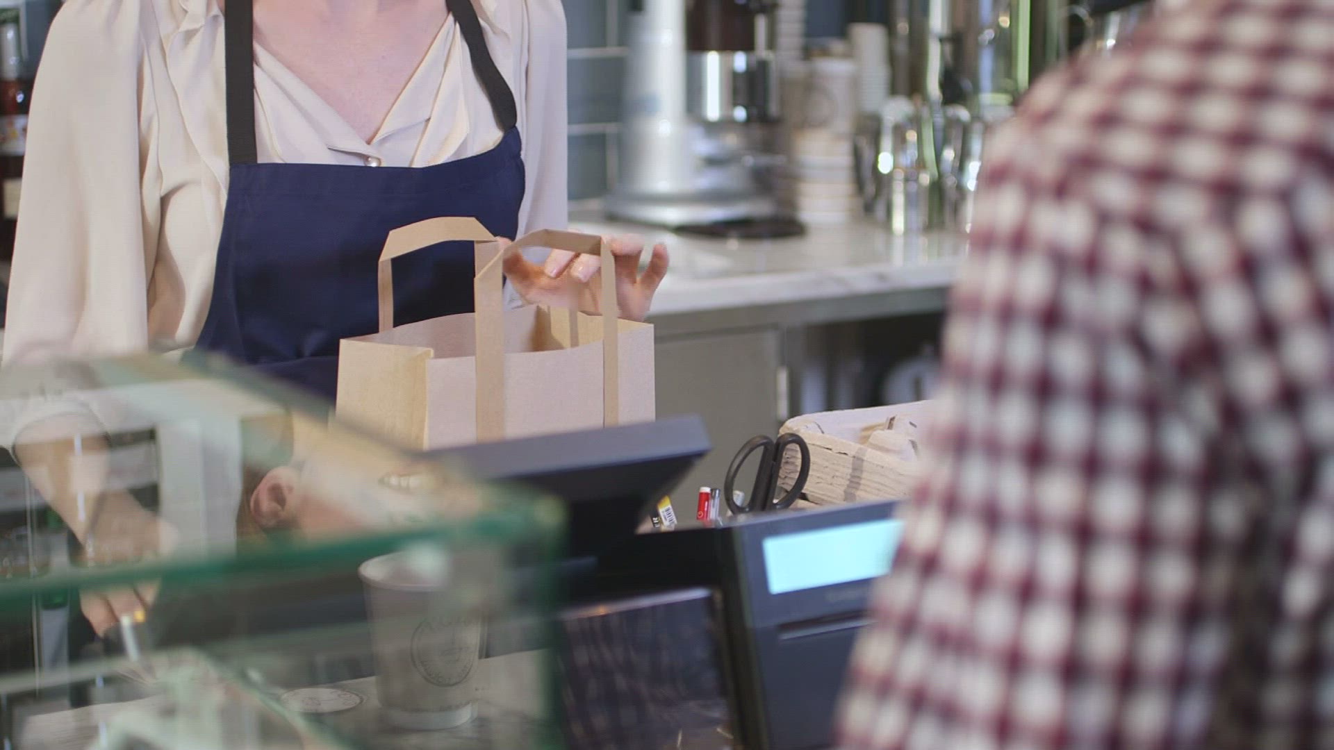 Female seller serving customer