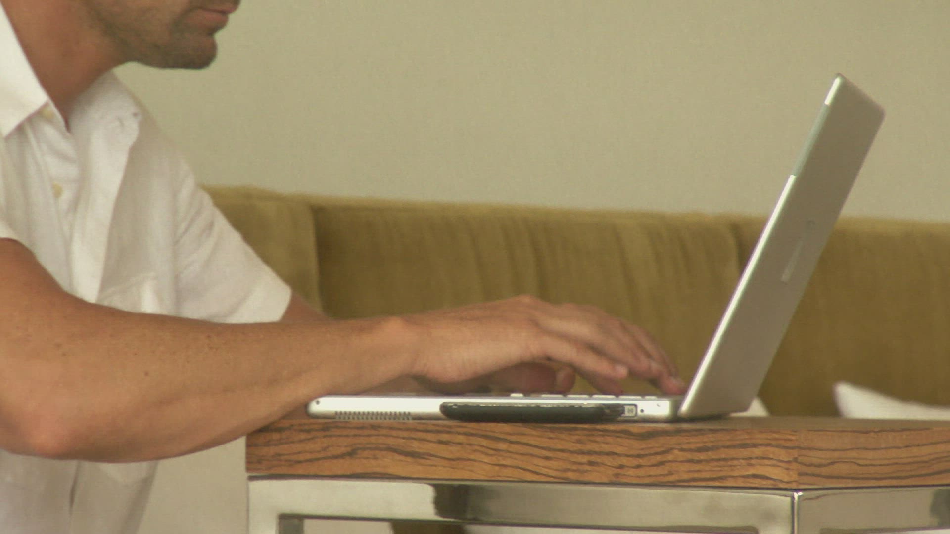 MCU PAN OF A MAN TYPING ON A LAPTOP