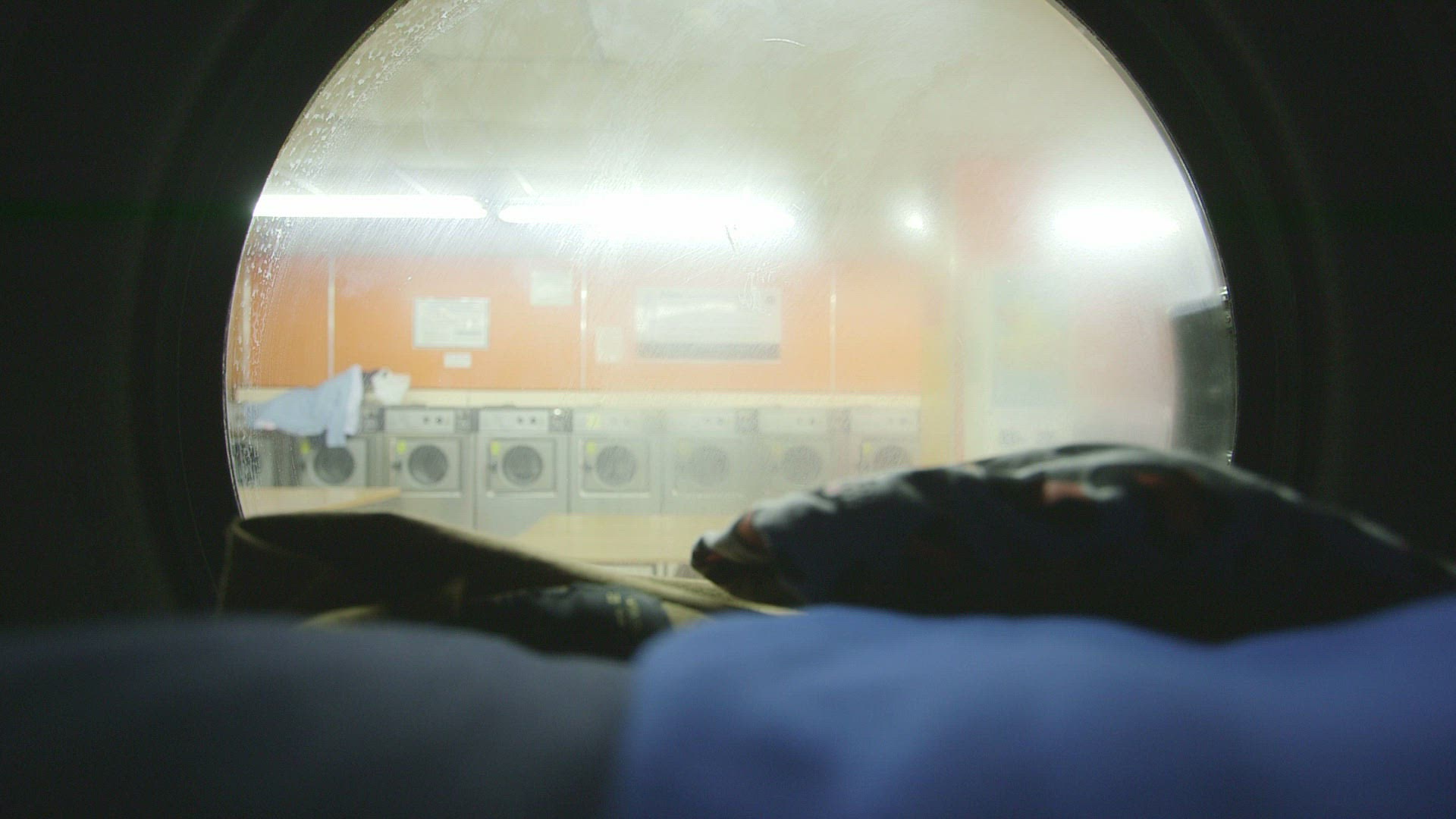 A Young Woman opens the door of the washing machine and finds a pair of funny underwear