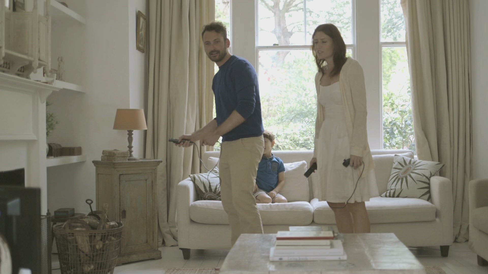 Father teaching his son to play video game with wii remote