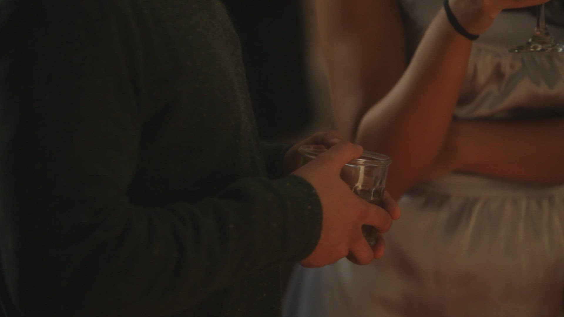 Young Adult Females toasting champagne in restaurant