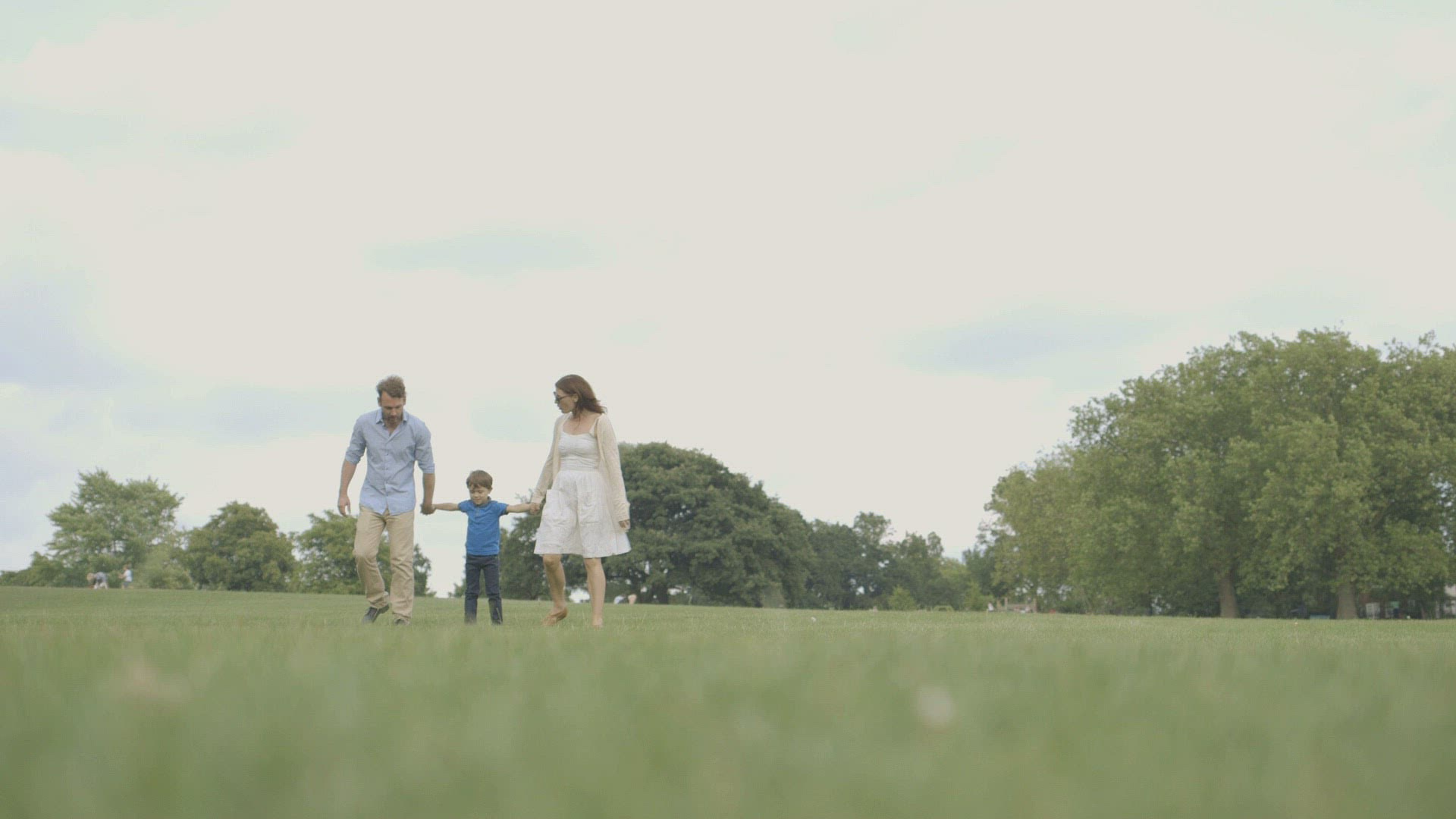 Mother and father playing with son in park