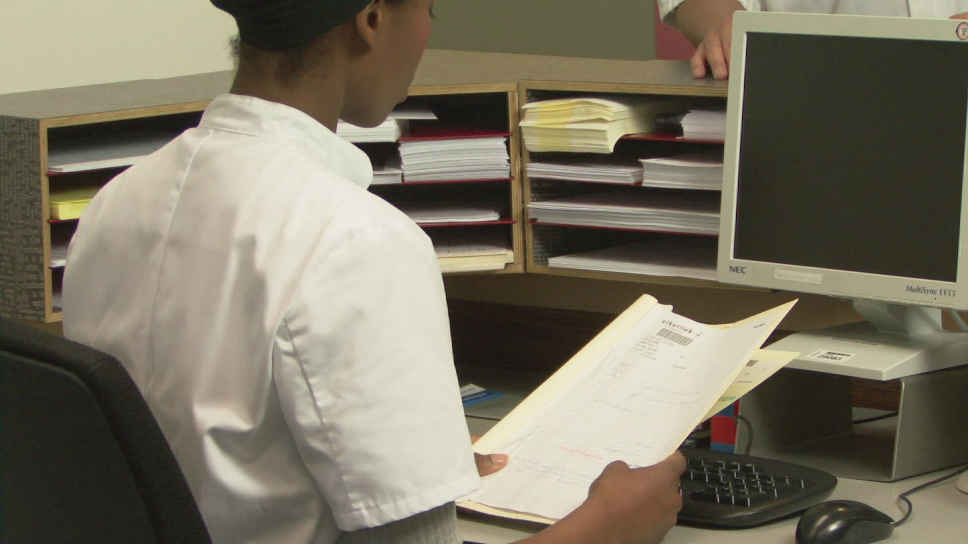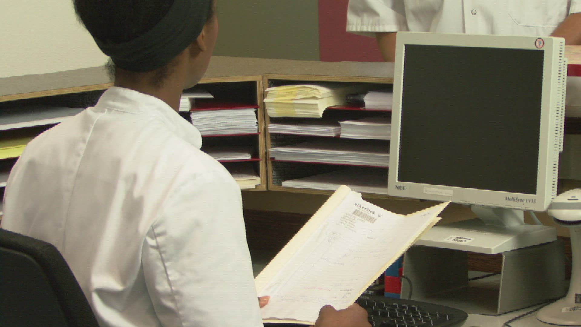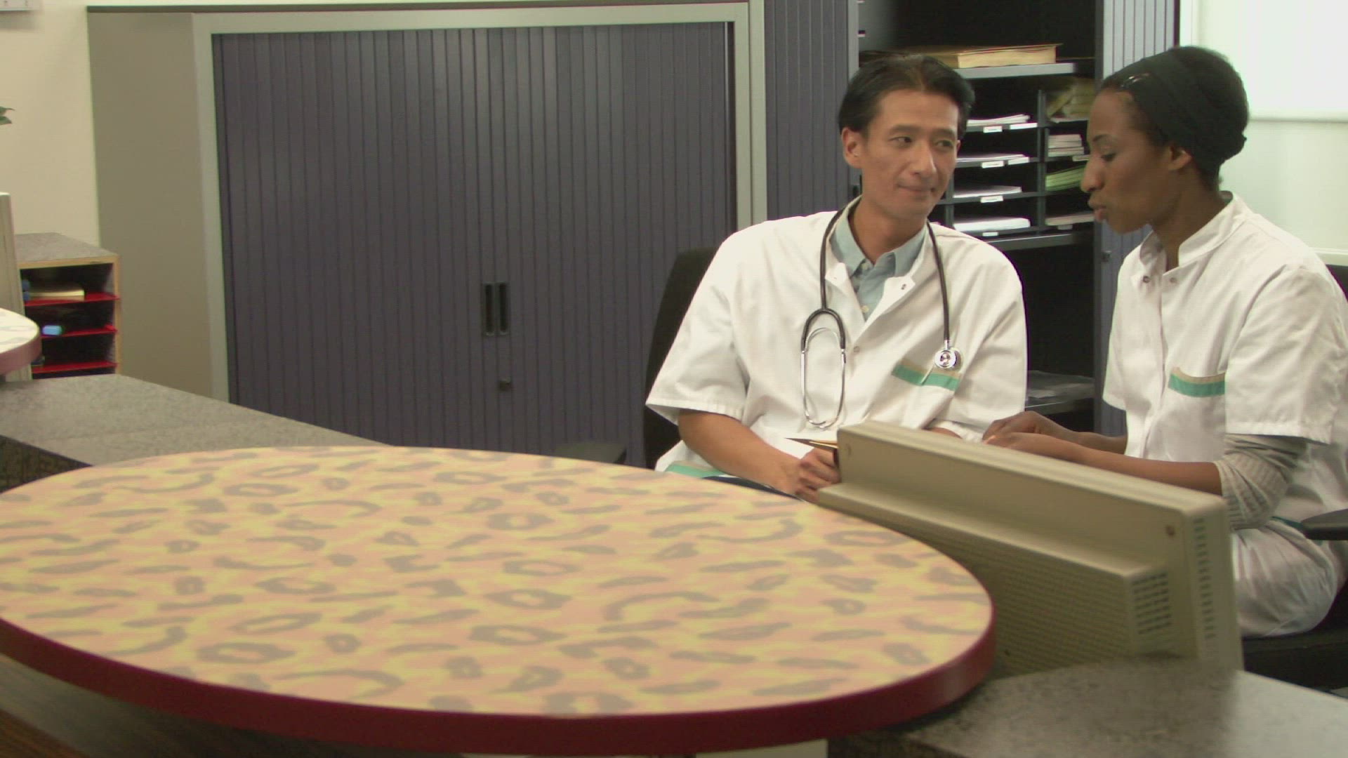 MS OF DOCTORS AND A NURSE READING A FILE