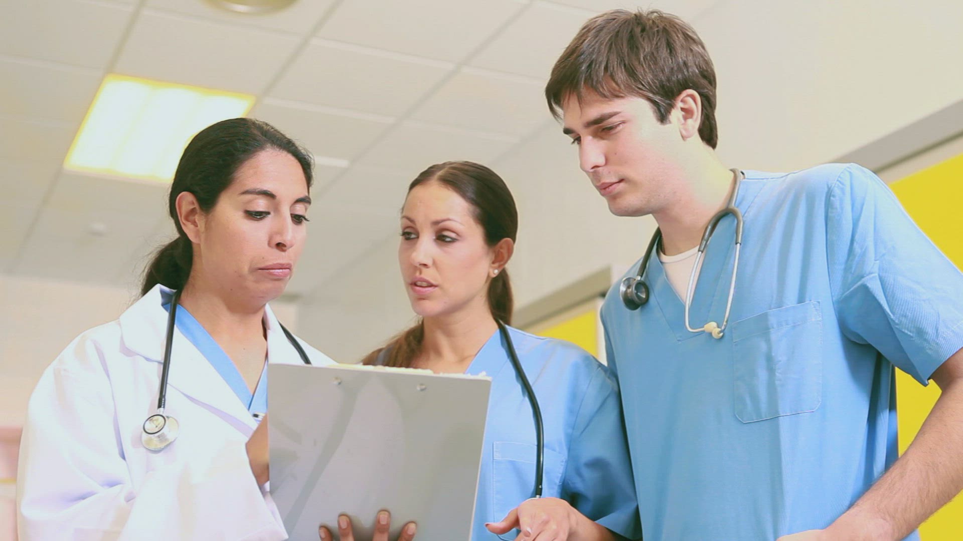 MS OF DOCTORS AND A NURSE WALKING DOWN A CORRIDOR