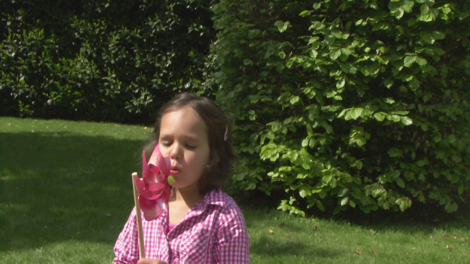 MS OF A GIRL BLOWING A PINWHEEL