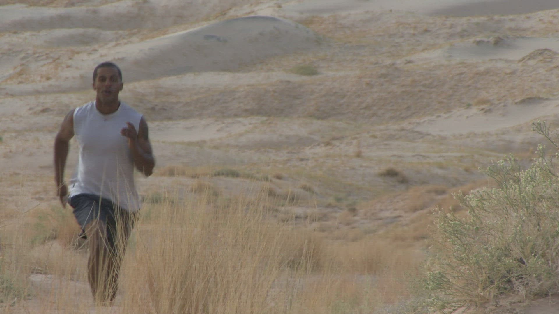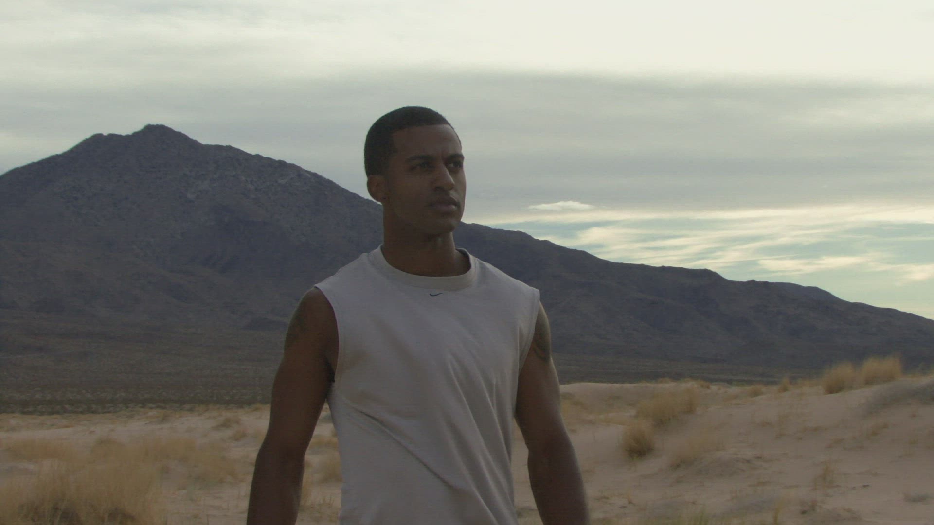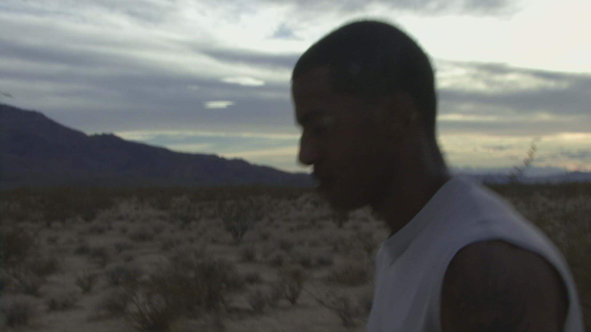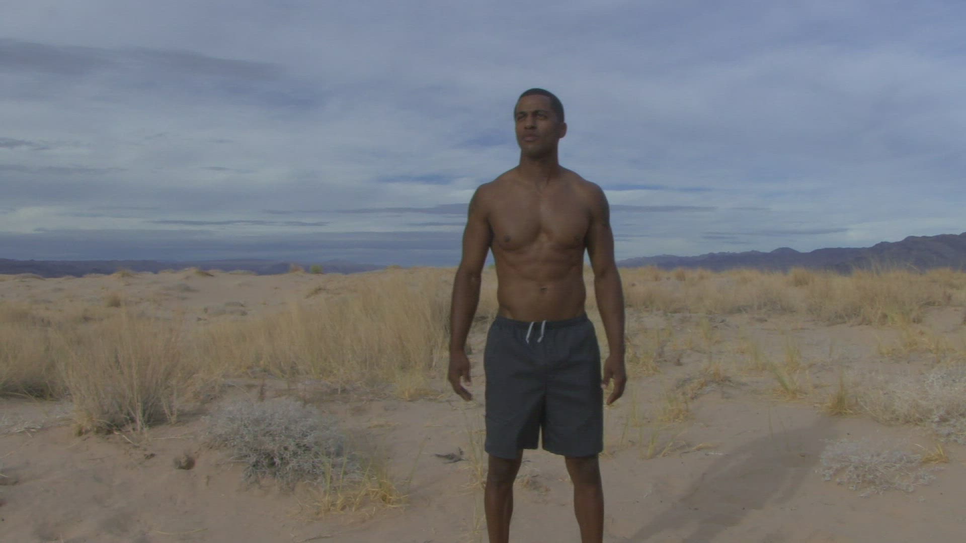 Male reaching his arms out in the desert