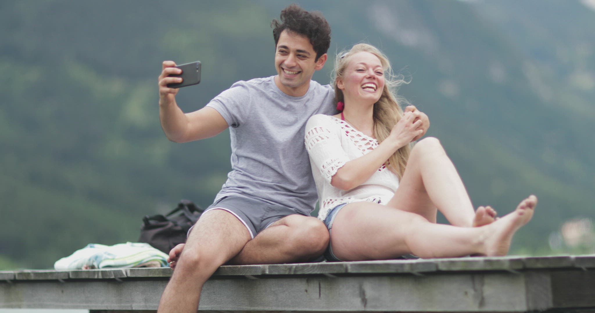 Adult Afro American female taking selfie on brooklyn bridge