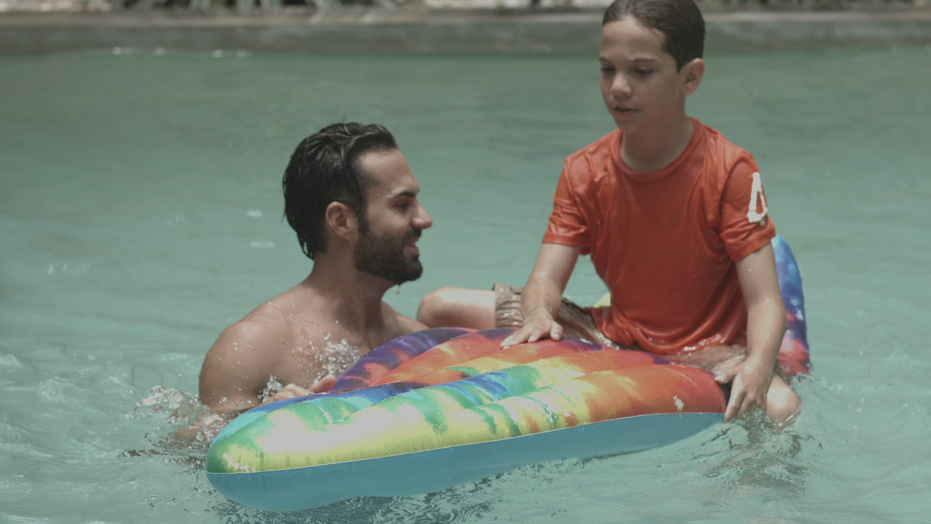 Man taking photo of his children children enjoying in swimming pool