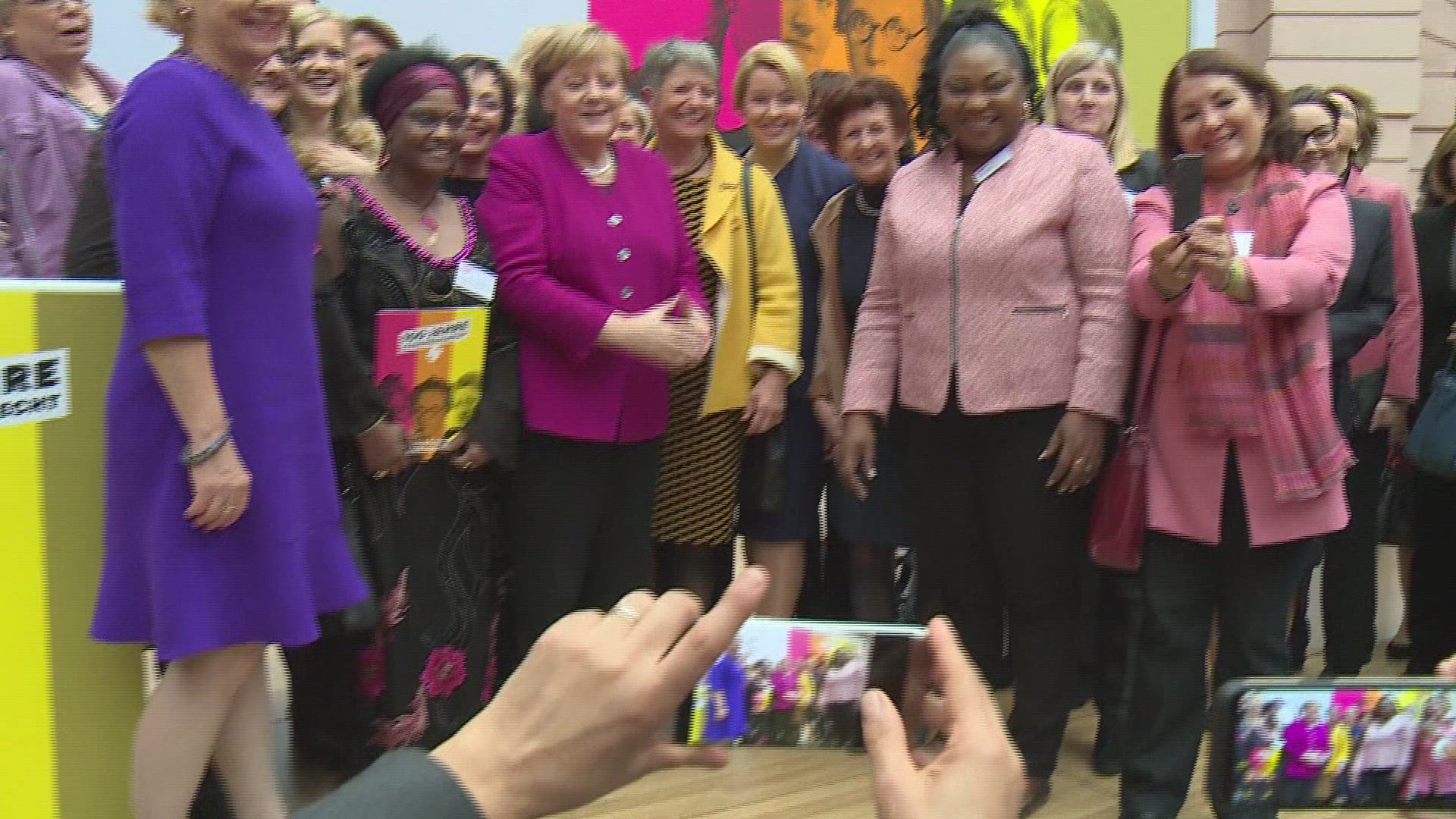 Businesswomen walking through office having a meeting