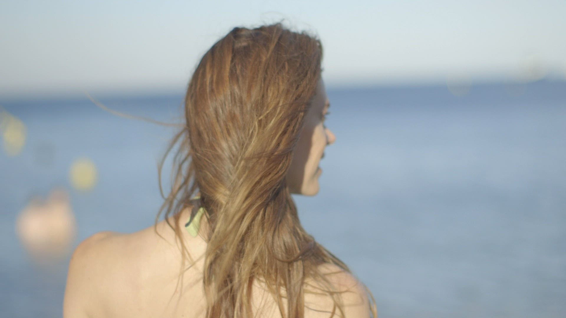 Beautiful woman wears bikini and holding mobile phone while taking selfie at beach