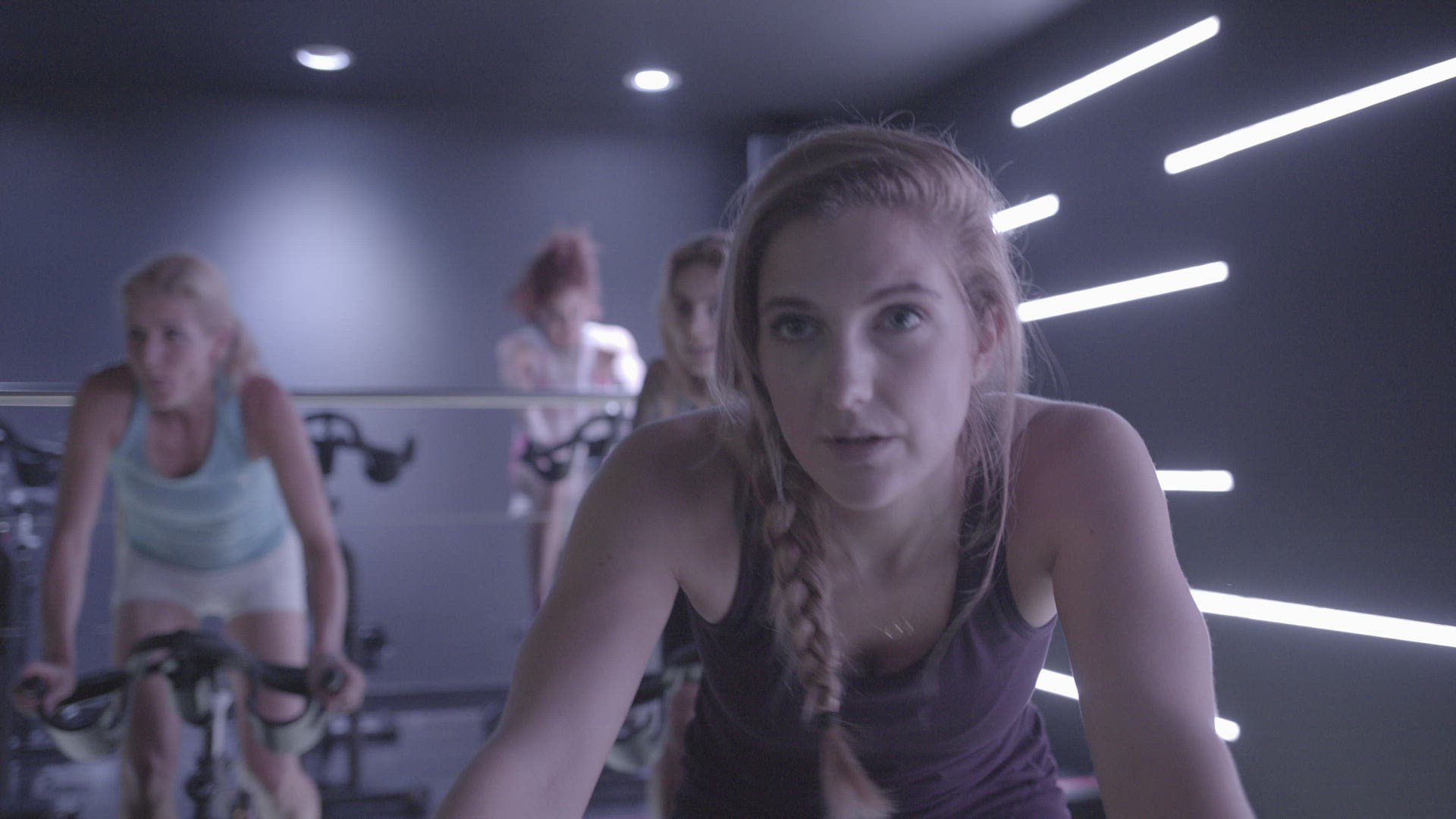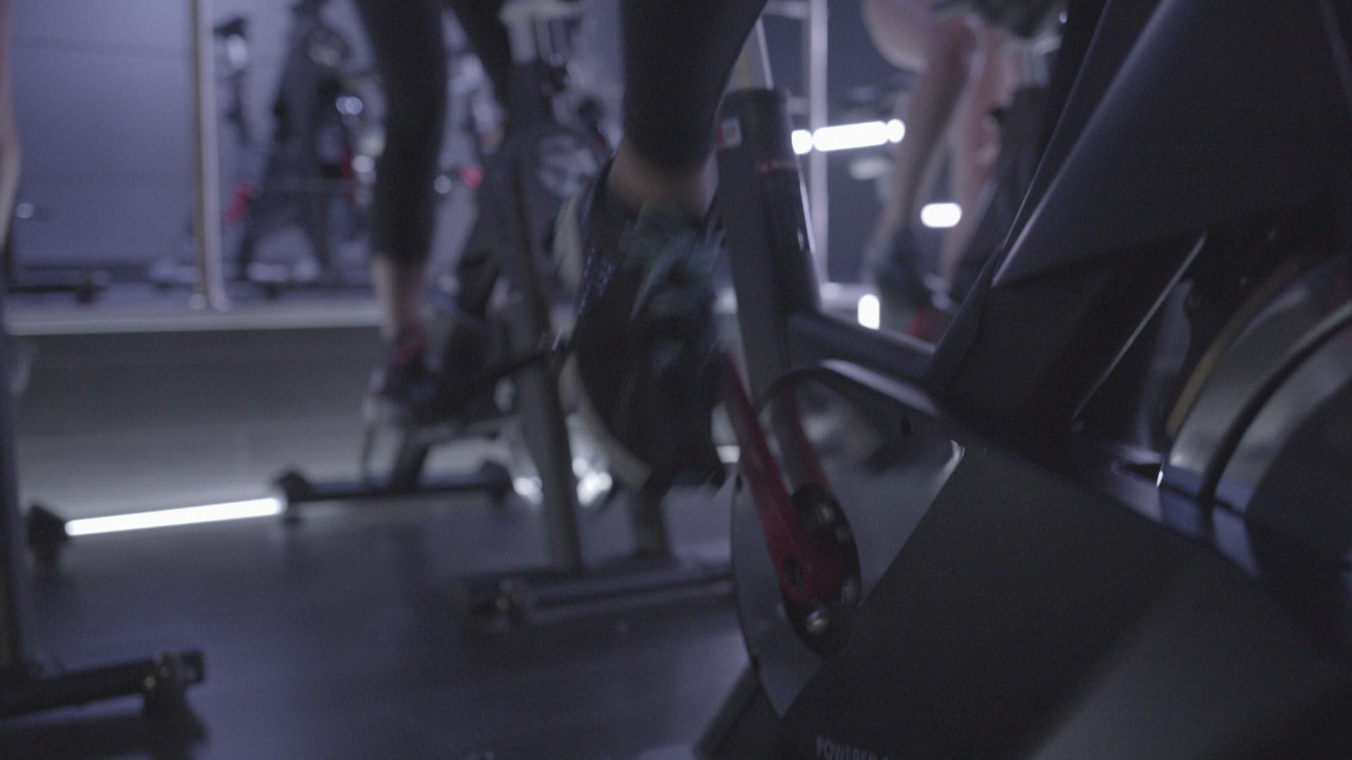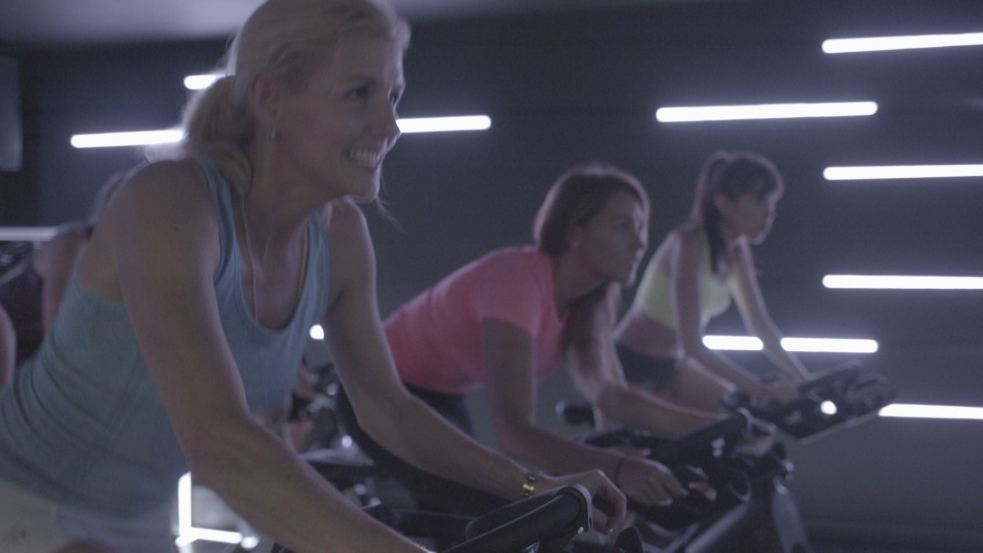 Group of adult women spinning class exercise in gym