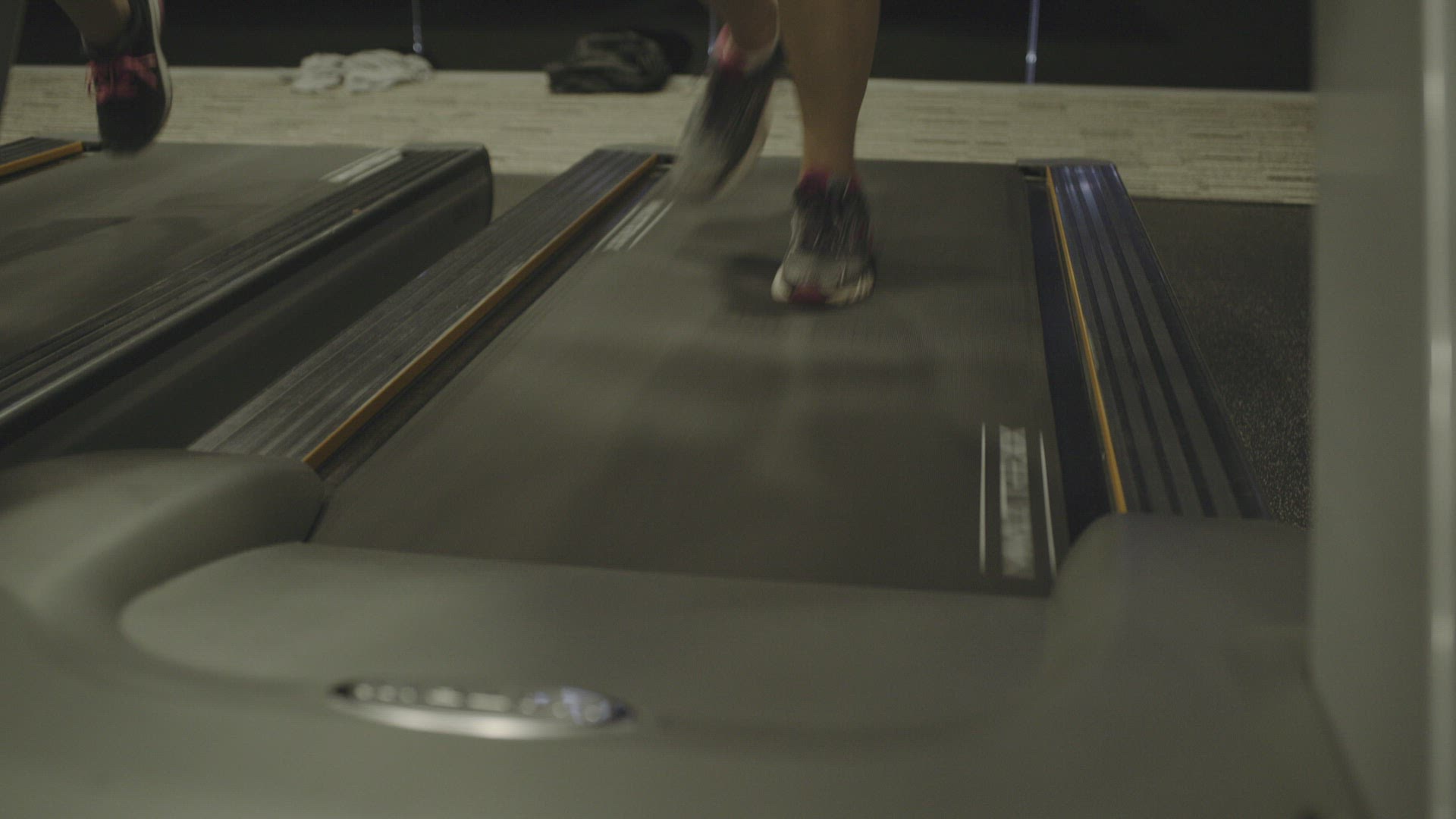 Group of adult women exercising on treadmill in gym