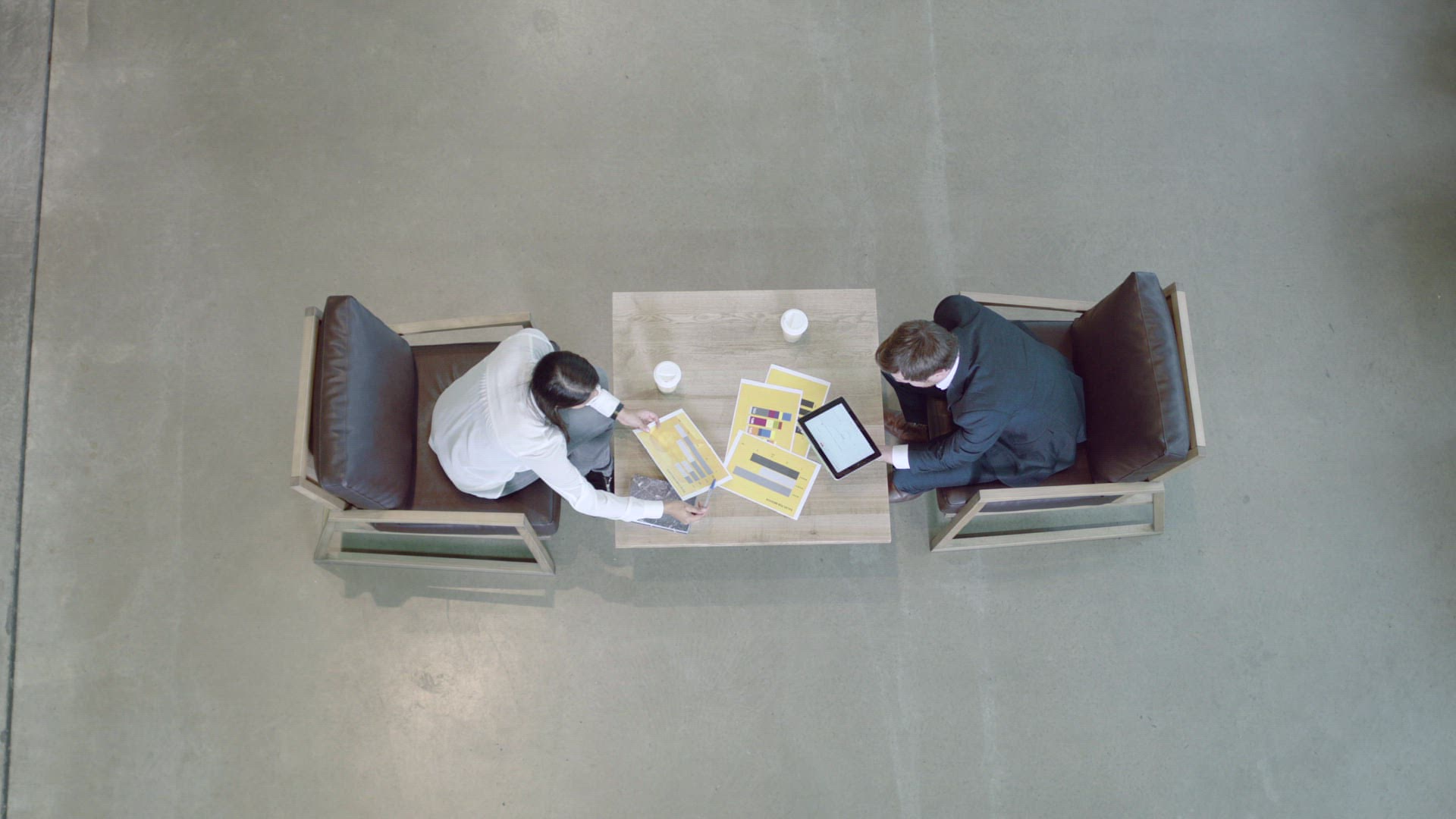High angle view on business meeting in office lobby