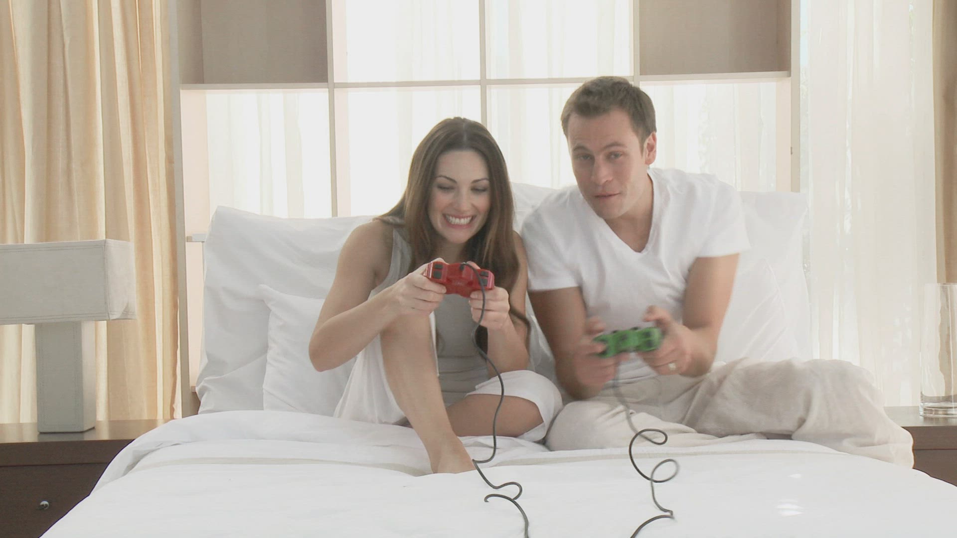 Father and son watching a football match in bedroom