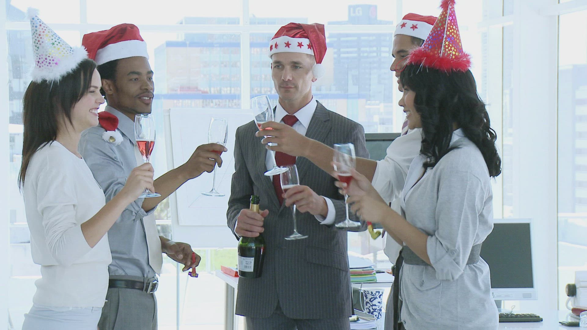 Business team celebrating a success in business with champagne