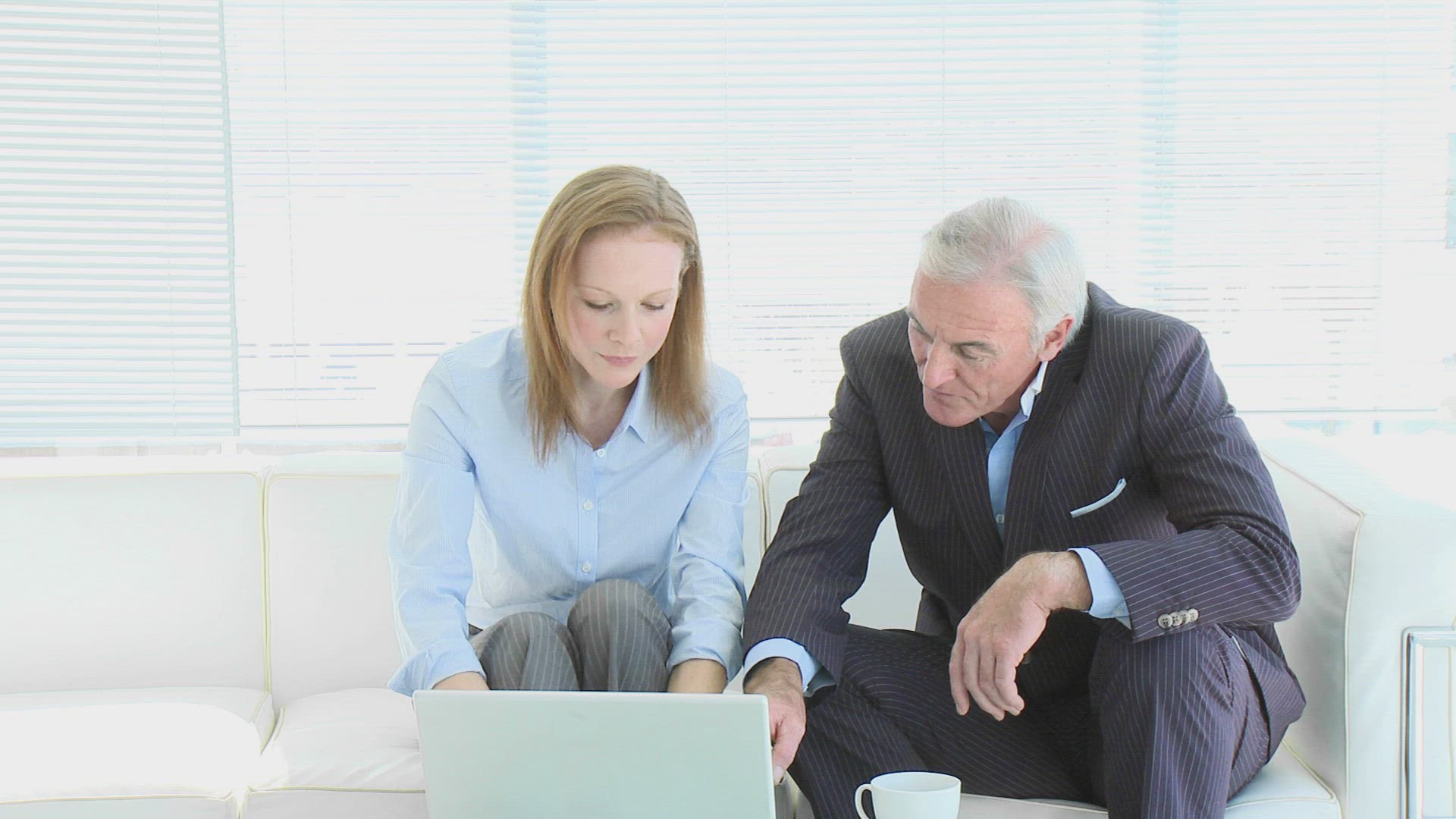 Businesswoman and senior businessman working with a laptop