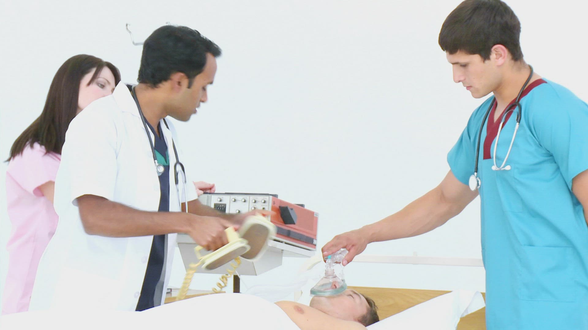 Medical team resuscitating a kid with a defibrillator