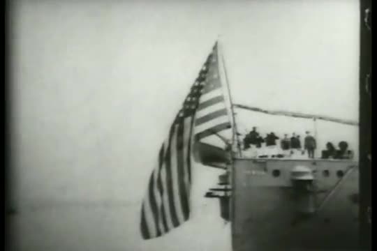 Shows every detail of the 'Texas' as she passes Riverside Park.