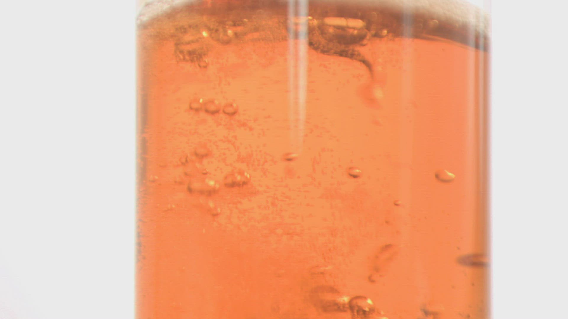 Melting ice in super slow motion in apple juice against white background