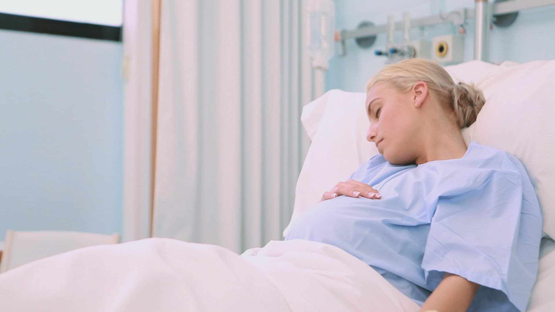 Female doctor talking with a pregnant woman in hospital hallway