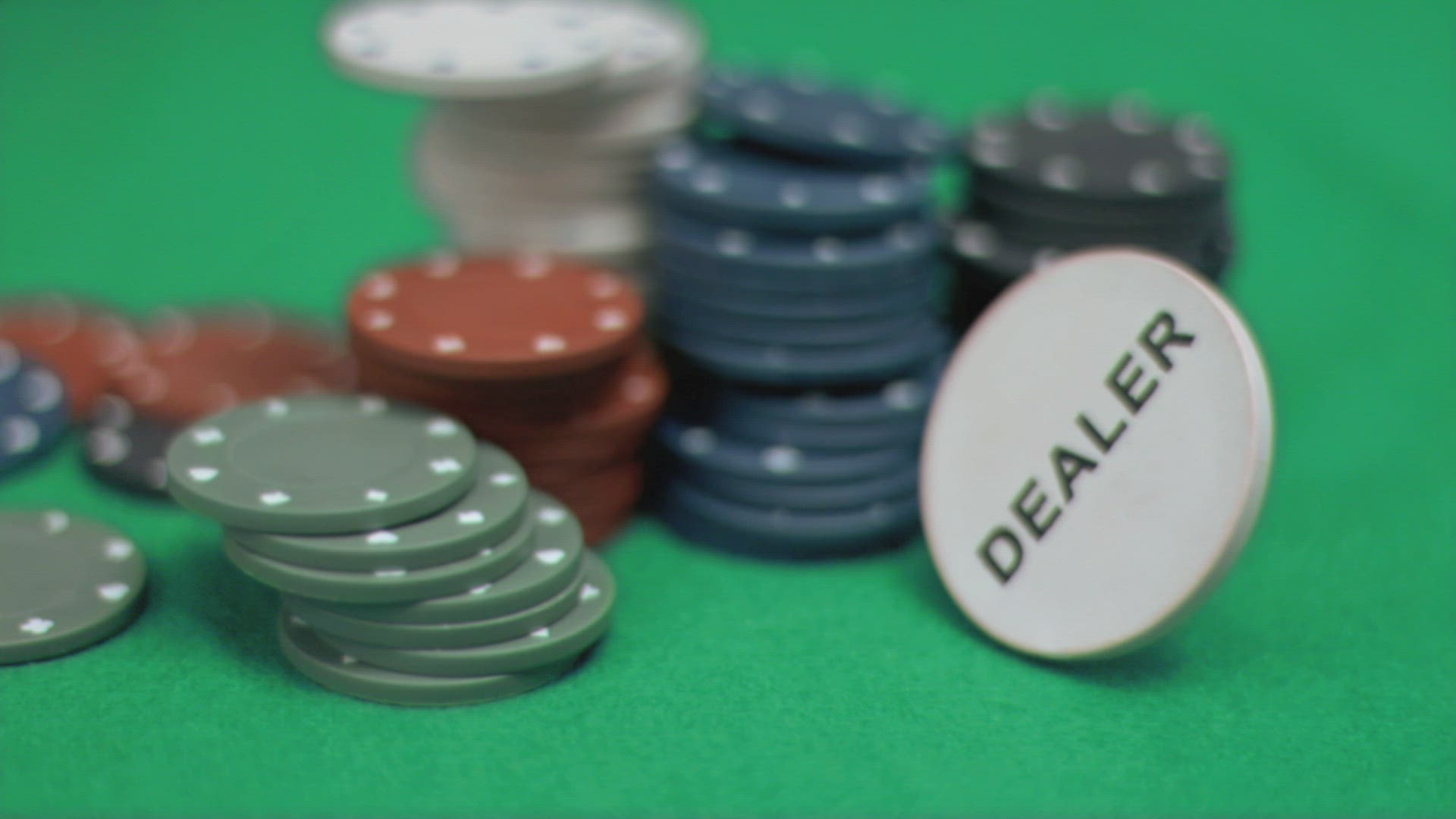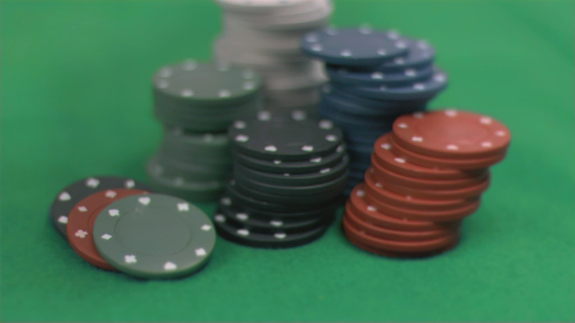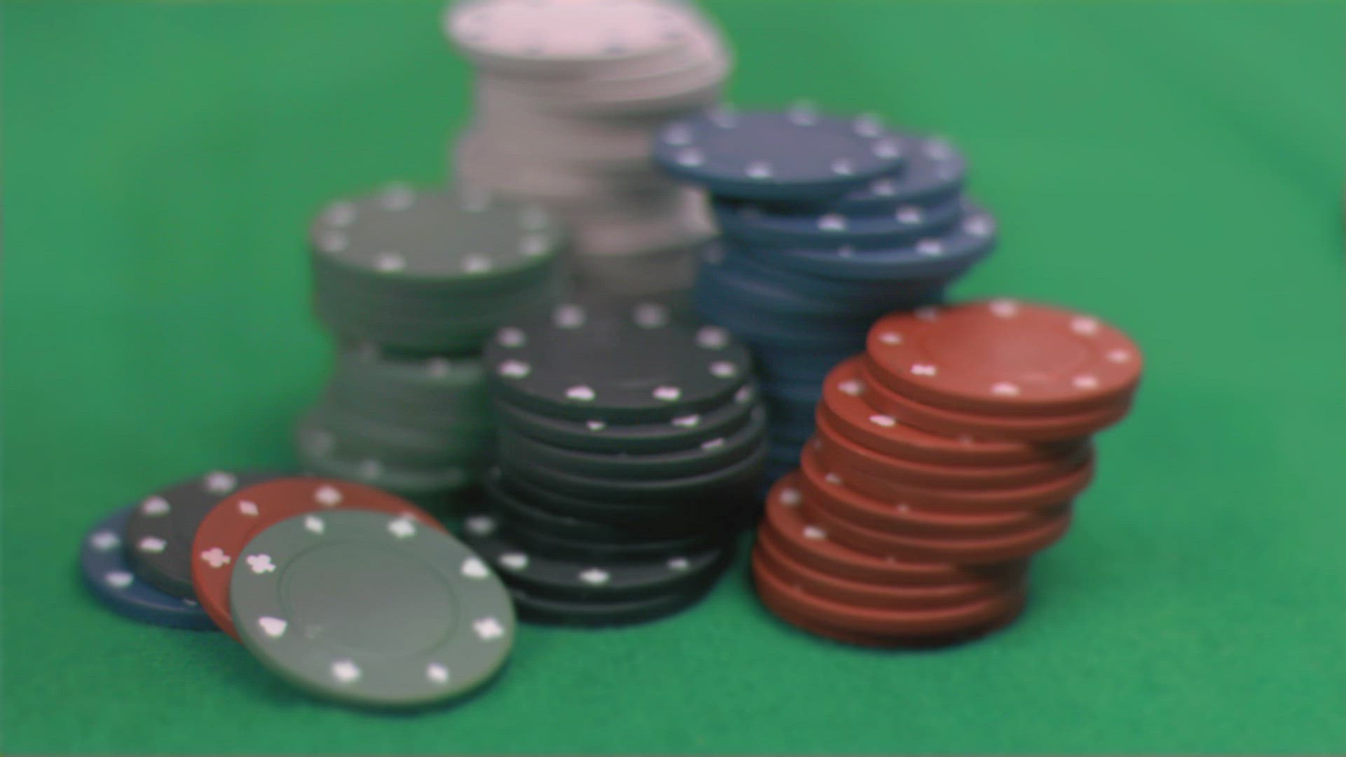 White chip falling in super slow motion on others against black background