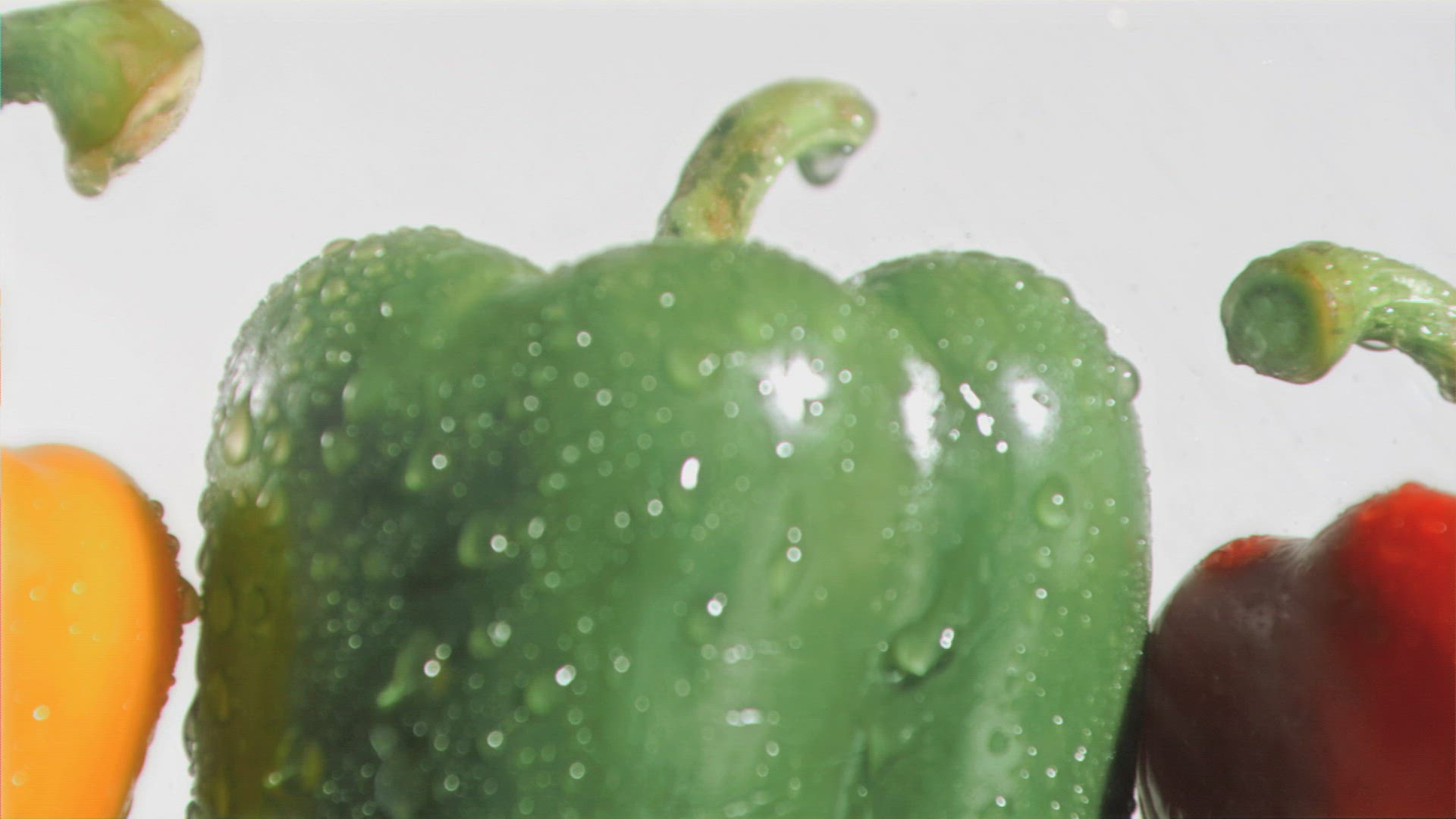 Water being sprayed on vegetables against white background