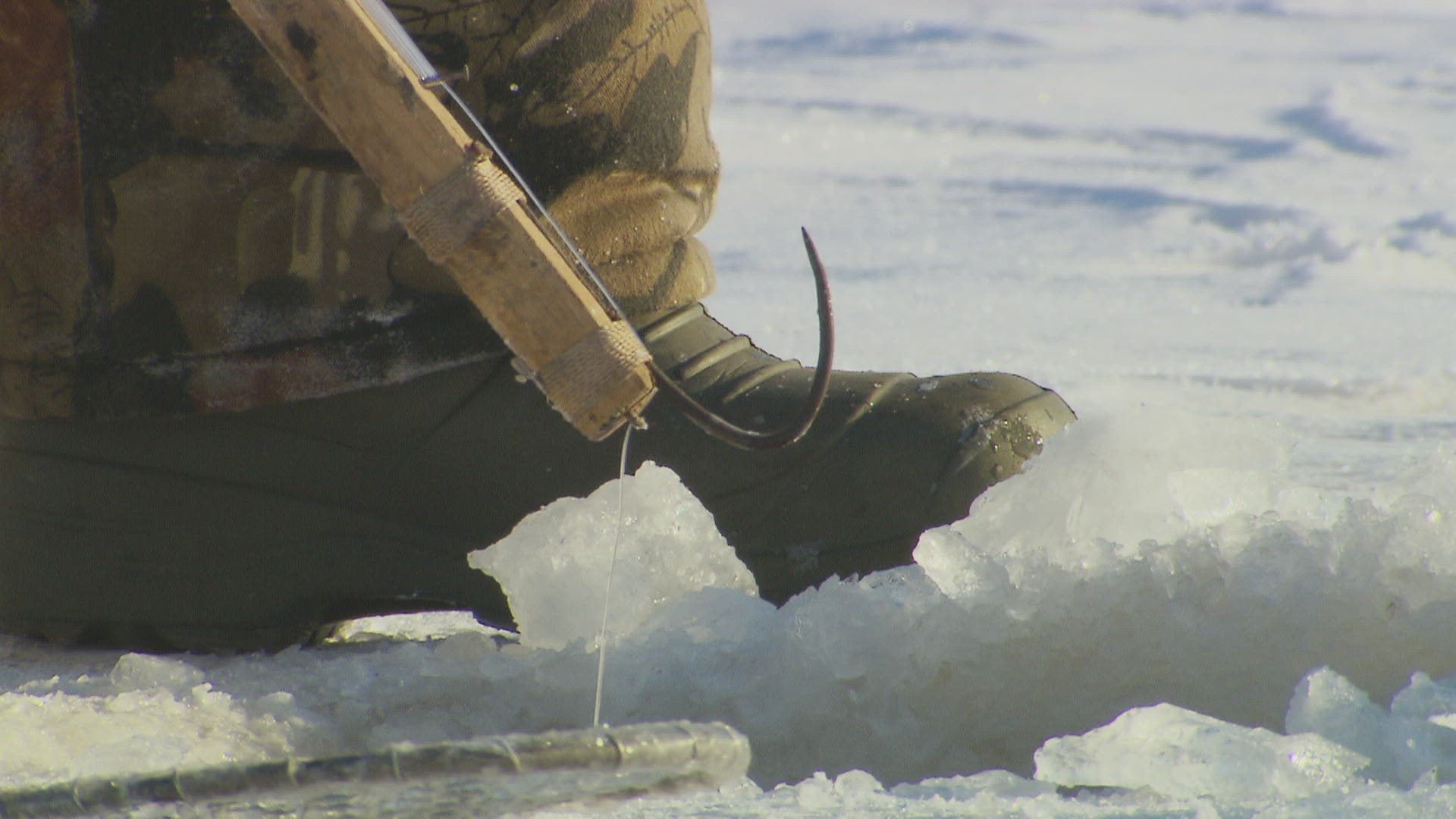 Father teaching his young son how to fish on a bench