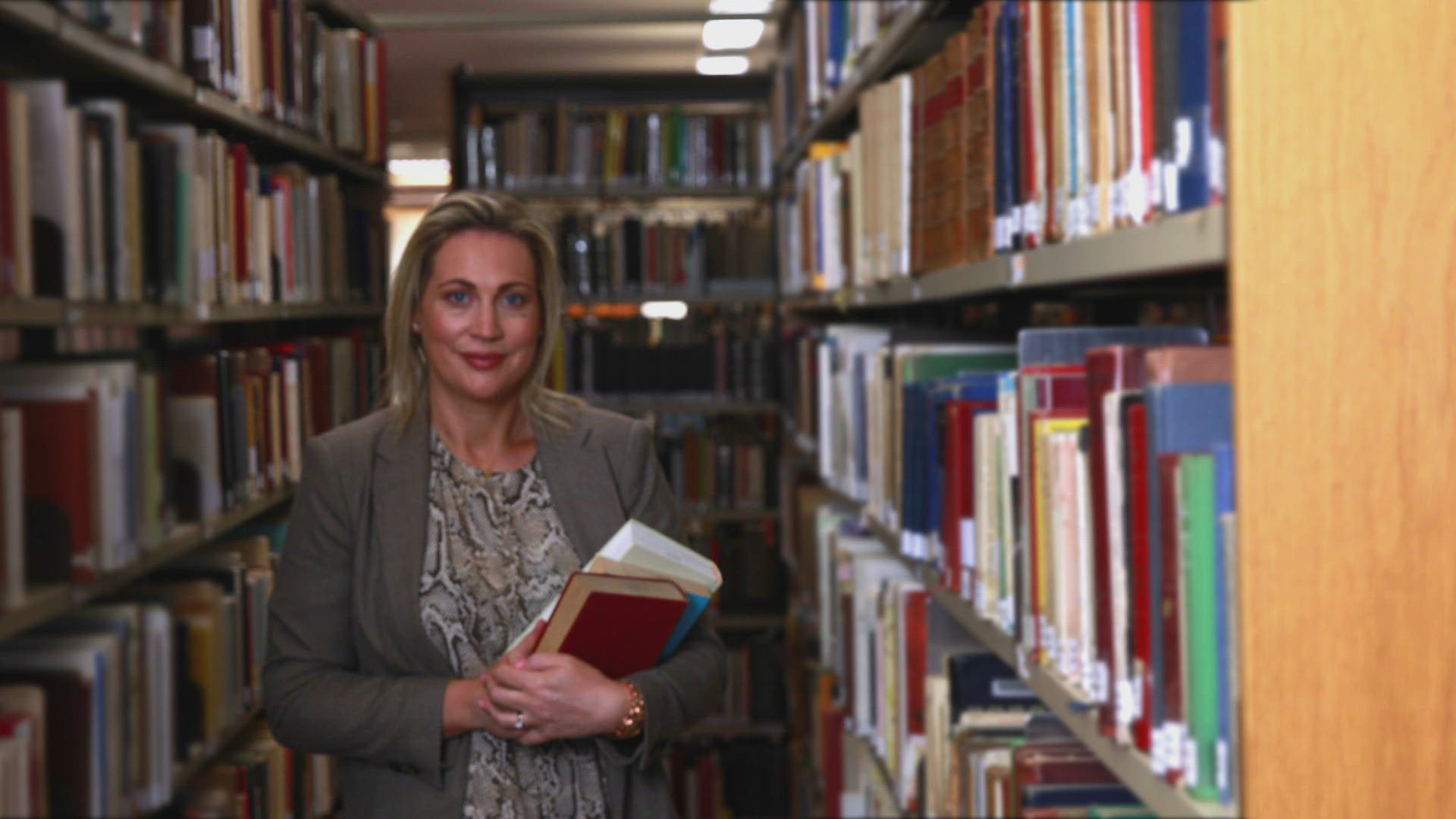 Librarian reading book from the shelf in high quality 4k format