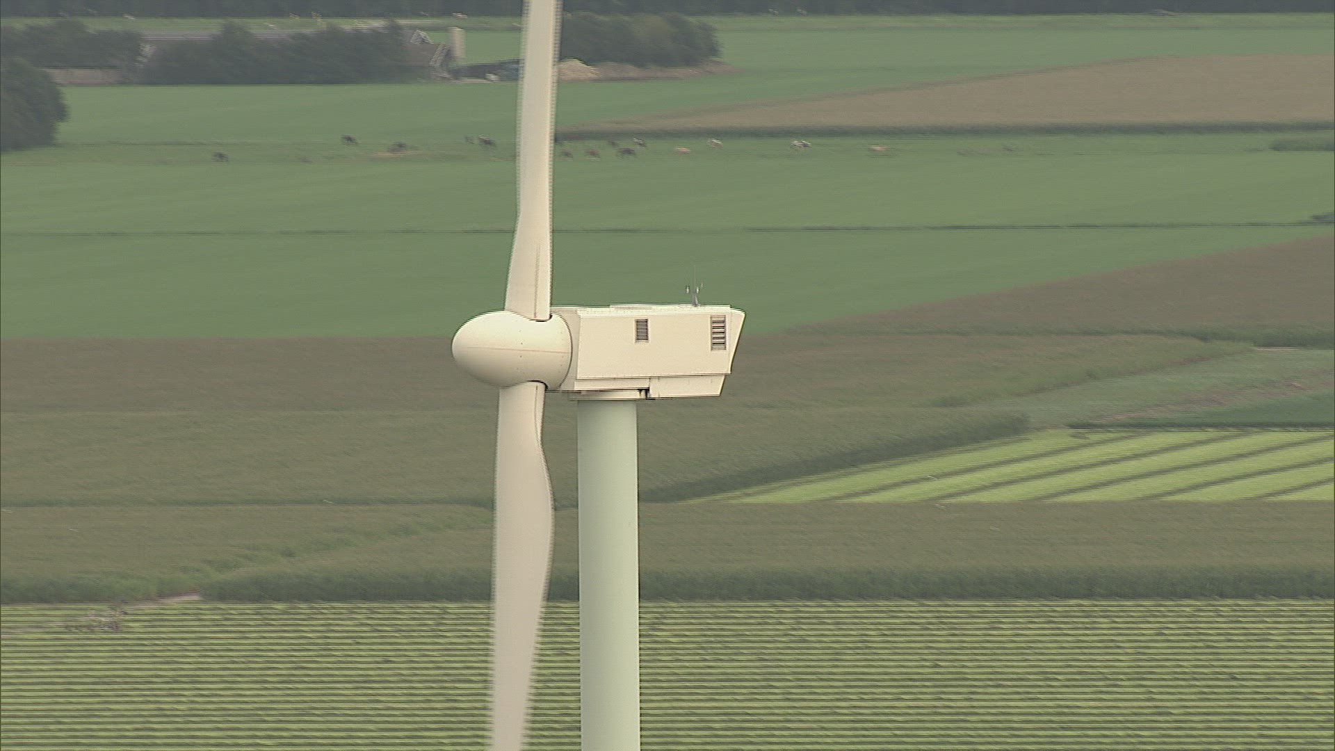 Wind energy spinning against a blue sky in ultra hd format