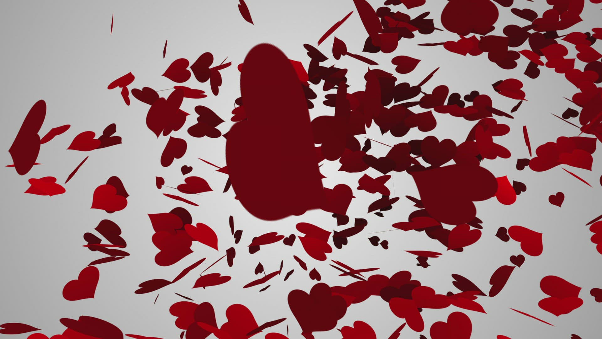 Digital animation of Red hearts falling on white surface with valentines message