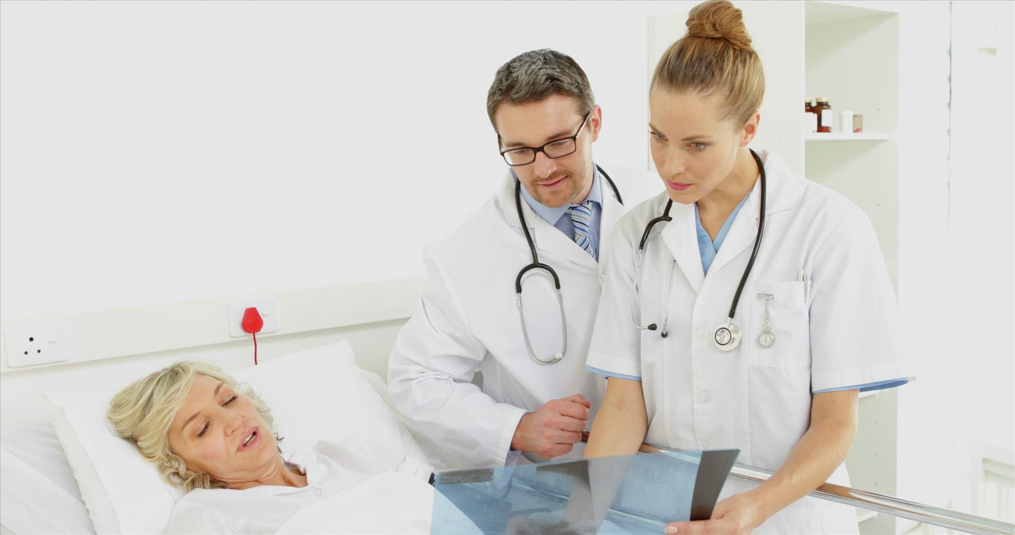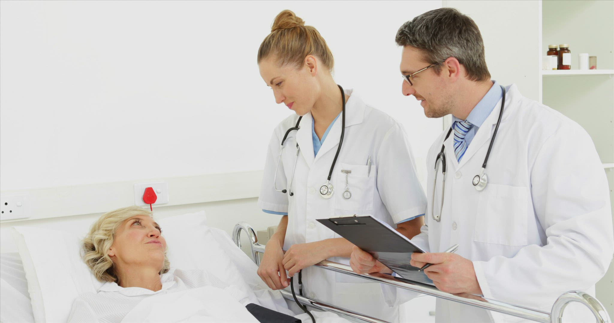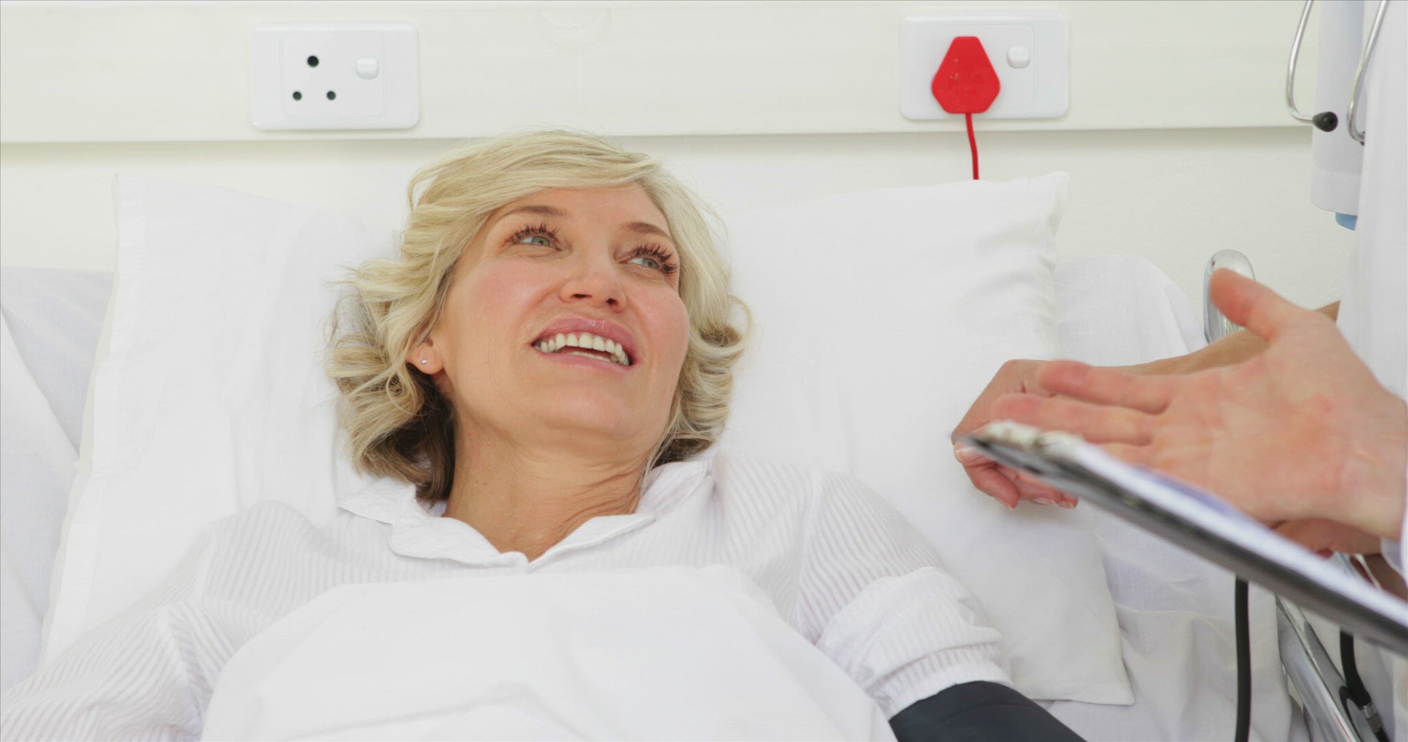 Nurse checking on her sick patient and talking to her